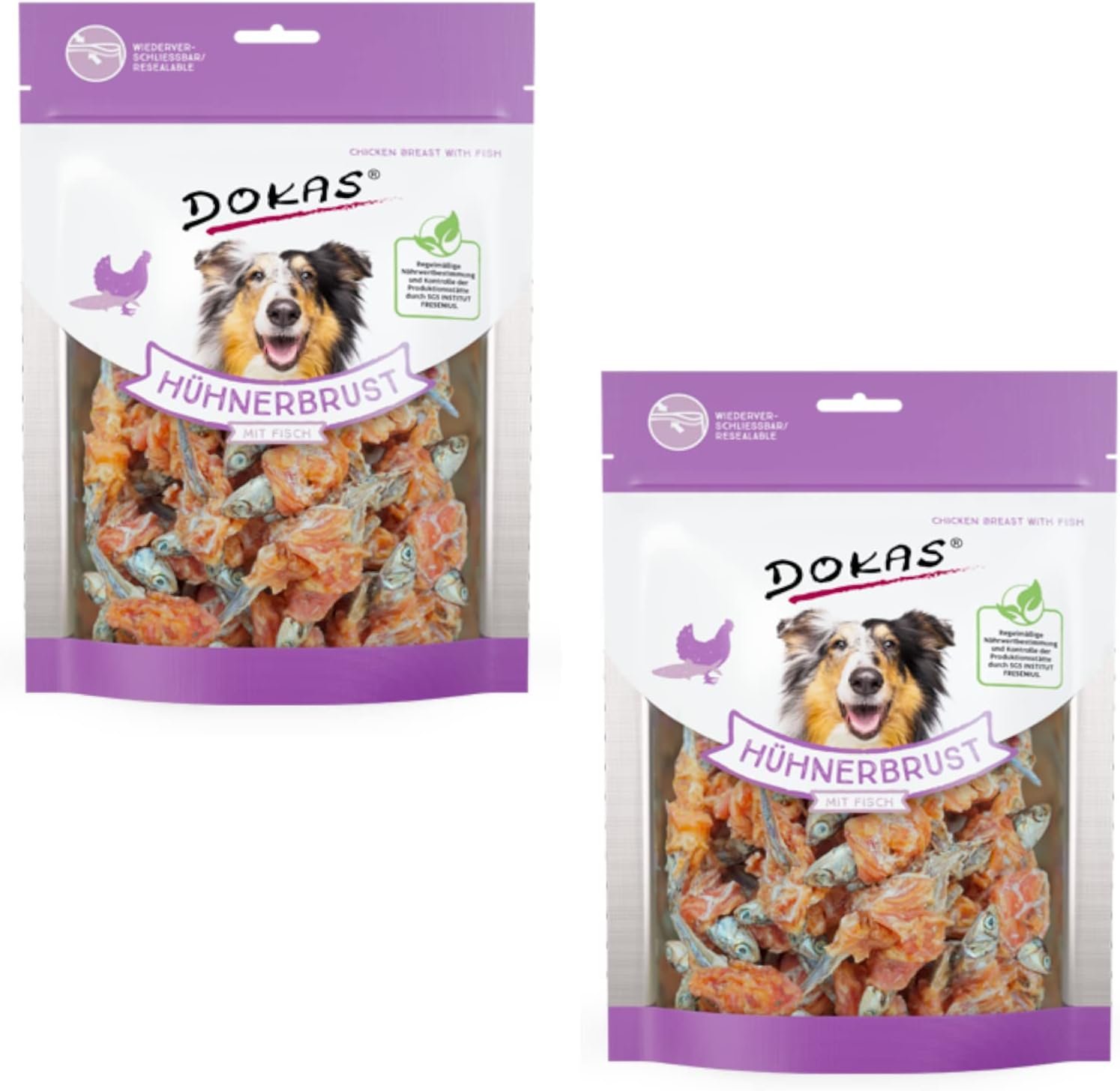 Leckerer Kausnack für Hunde – Dokas Hähnchenbrust mit Fisch ist umhüllt von zartem und fettarmem Hähnchenfilet und eignet sich hervorragend für Hunde in allen Lebensphasen
