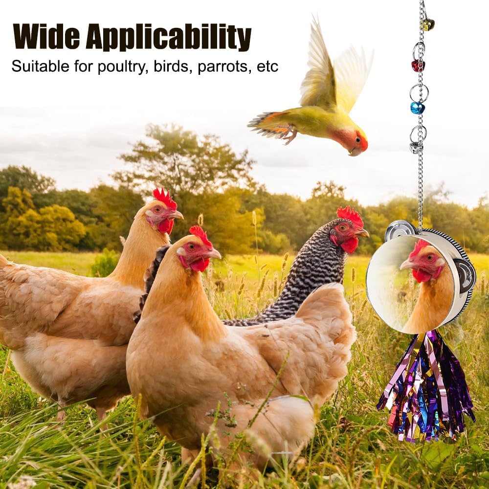 4. Metallglocke: Hühnerspiegelspielzeug mit einer kleinen Glocke. Wenn die Hühner mit dem metallischen Klingelton spielen, steigert das den Spielwert und sorgt für mehr Spaß.