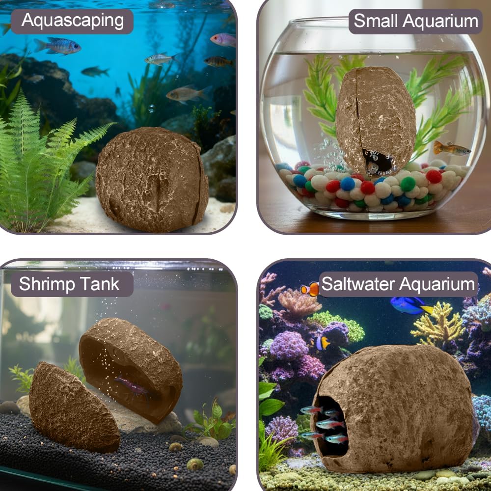 Rückzugsort für mehrere Arten: Perfekt für kleine Fische und kleine Reptilien wie Geckos, kleine Chamäleons, Krabben, Spinnen und Skorpione. Diese magnetische Aquarienhöhle dient gleichzeitig als Aquariumdekoration und als gemütliches Versteck für Wasser- und Amphibiengefährten.