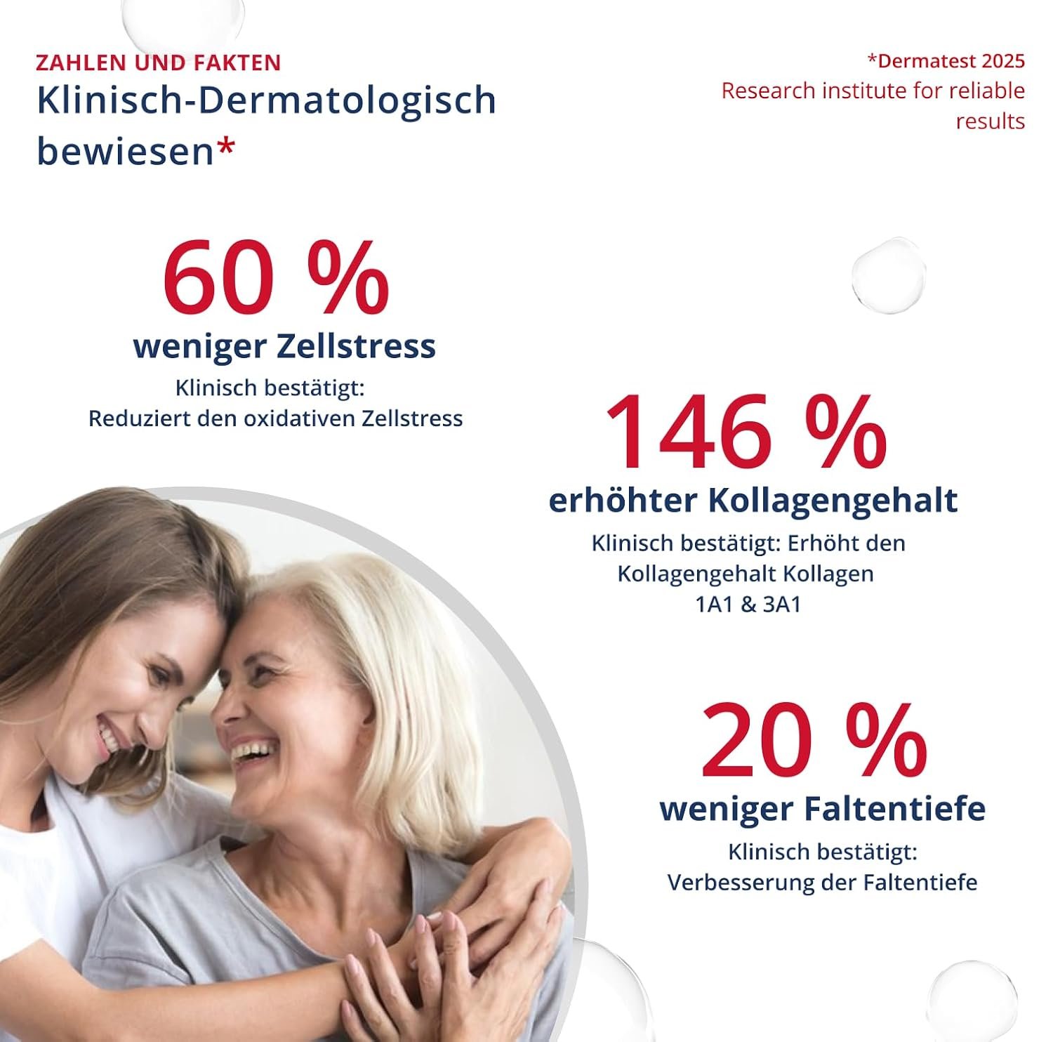 Anti-Falten-Formel: Retinol 0,23 % plus Resveratrol und Ferulasäure stimulieren die Kollagenbildung um bis zu 146 % und reduzieren die Faltentiefe klinisch um 20 %.