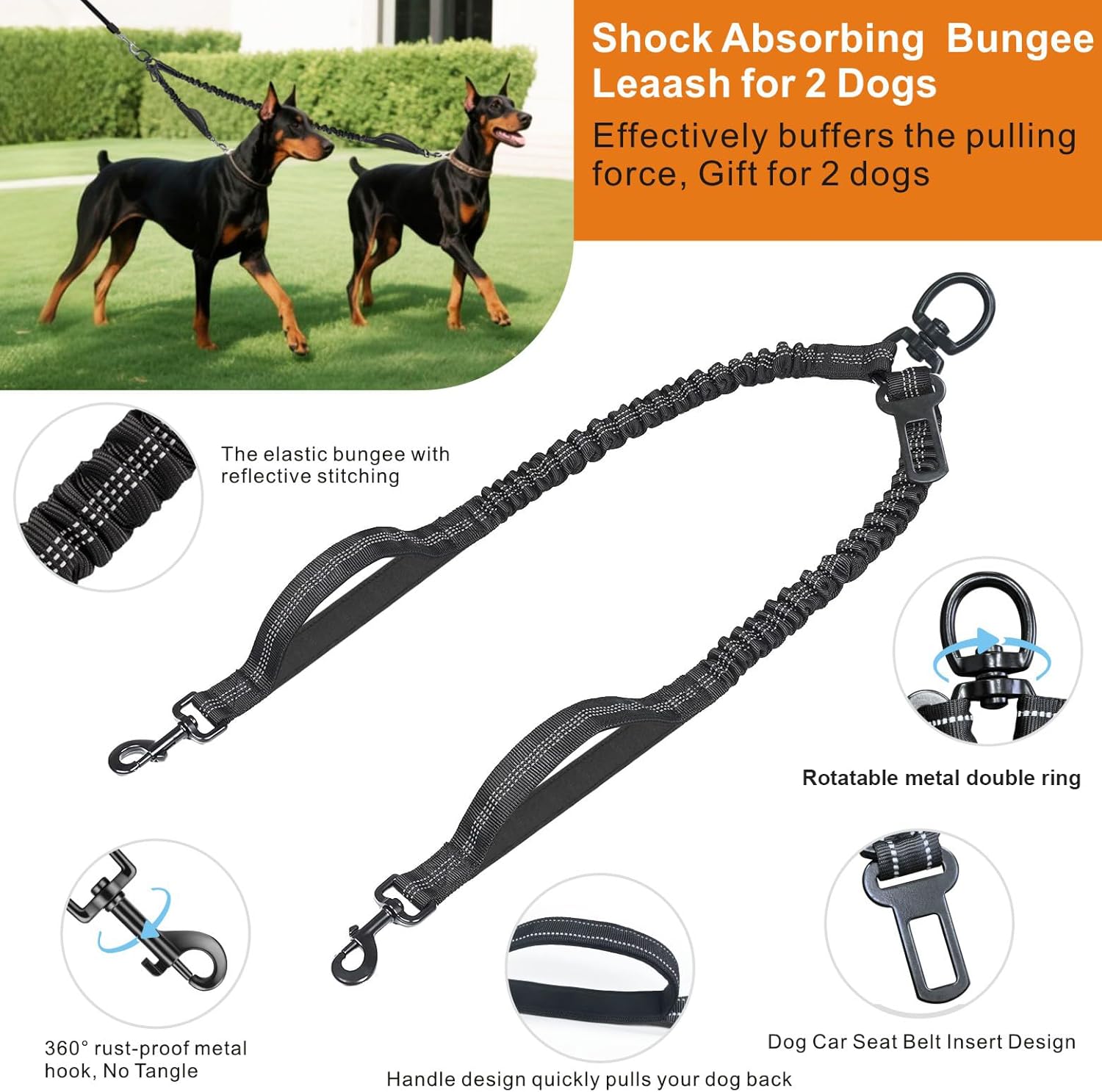 Zwei Hunde, eine Leine – doppelter Spaß! Gehen Sie mit der Rollleine und dem Doppel-Bungee mit zwei Hunden gleichzeitig spazieren. Die große Hundeleine von Dotolog verfügt über einen zusätzlichen Sicherheitsgurtverschluss, sodass Sie sie als Sicherheitsgeschirr für zwei Hunde verwenden können. Das clevere Design mit doppeltem Verwendungszweck macht die Verwendung vielseitiger und bequemer.