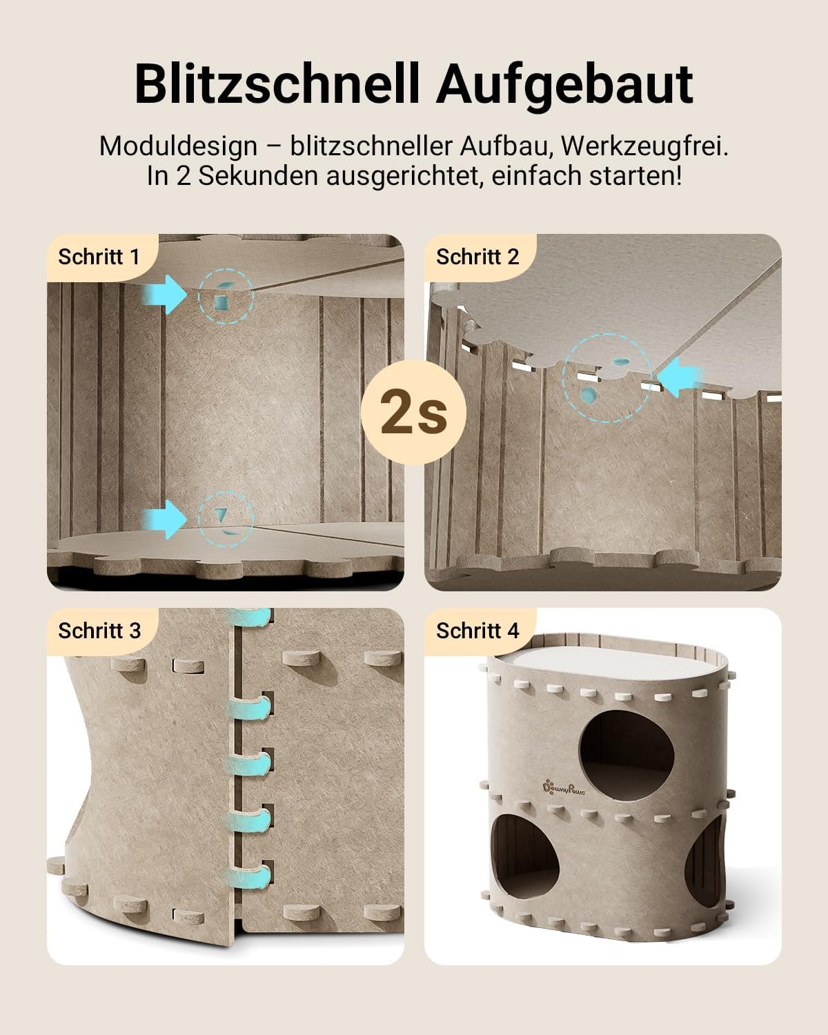 Harmonie für Mehrkatzenhaushalte: Unser zweistöckiges Burg-Katzenhaus bietet drei Katzen gleichzeitig einen privaten Rückzugsort – ohne Territorialstreitigkeiten!