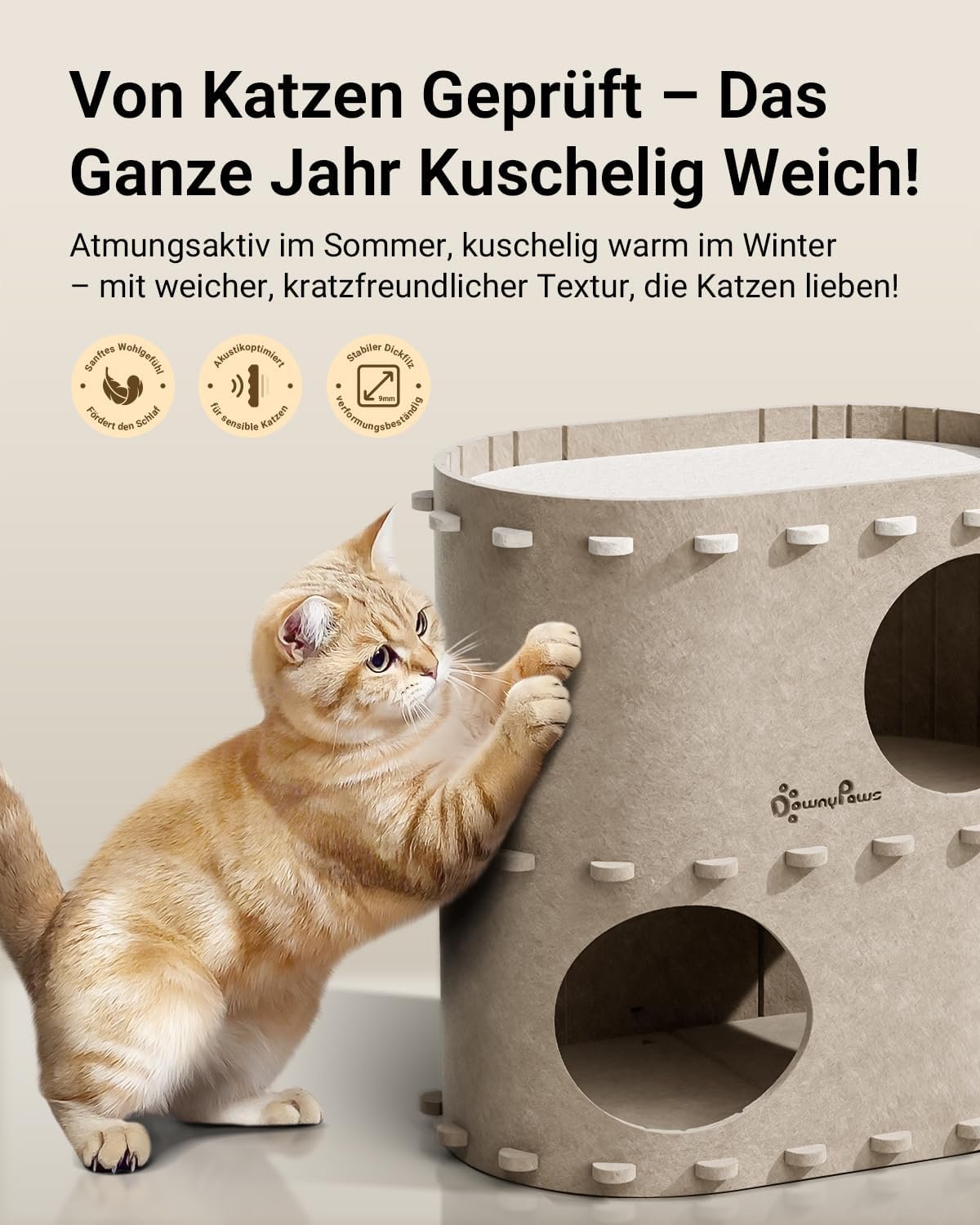 Schnurren, sicher! Unsere kuschelige Filzhöhle: Atmungsaktiv im Sommer, warm im Winter – mit 360°-Schutzsimulation für ein natürliches Gefühl der Geborgenheit.
