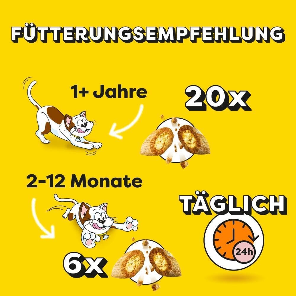 Naschkatzen können täglich bis zu 20 Stück unwiderstehliche Snacks essen. Eine zusätzliche Schüssel mit Trinkwasser sollte immer bereitstehen und das Gesamtfutter entsprechend reduziert werden