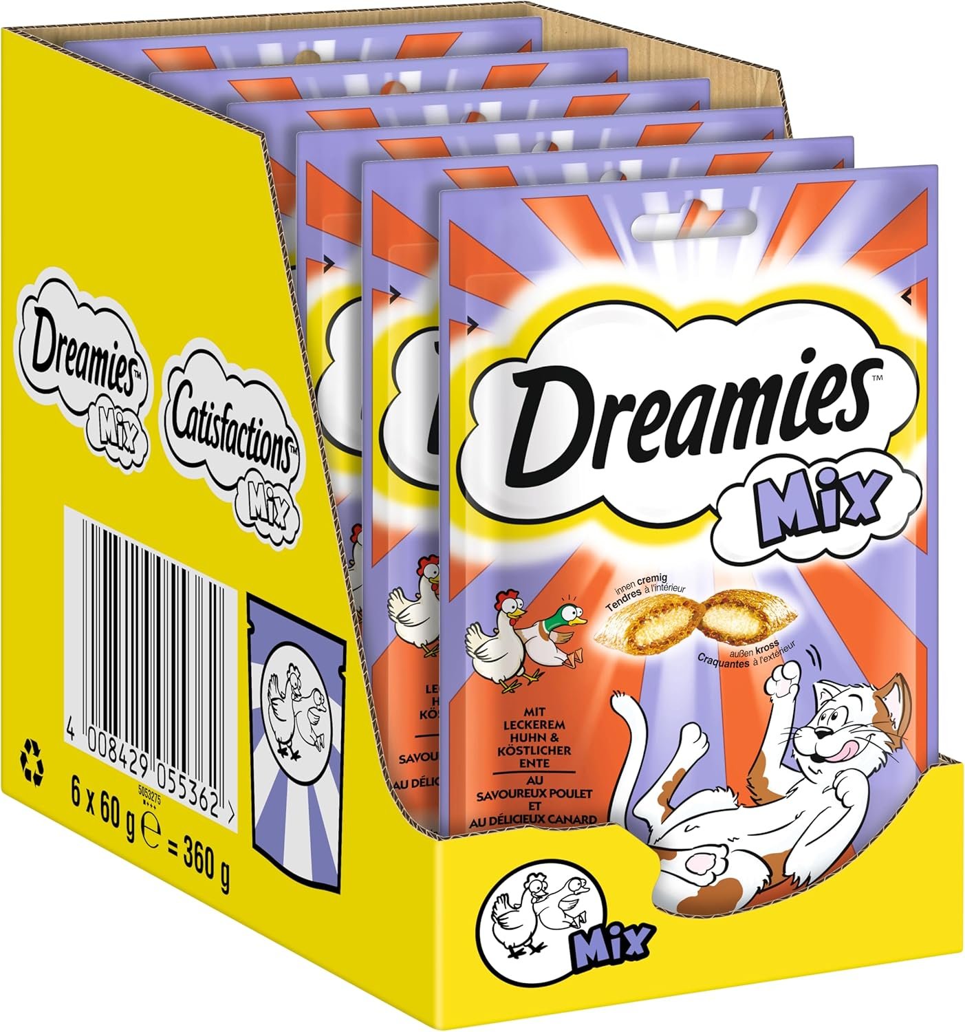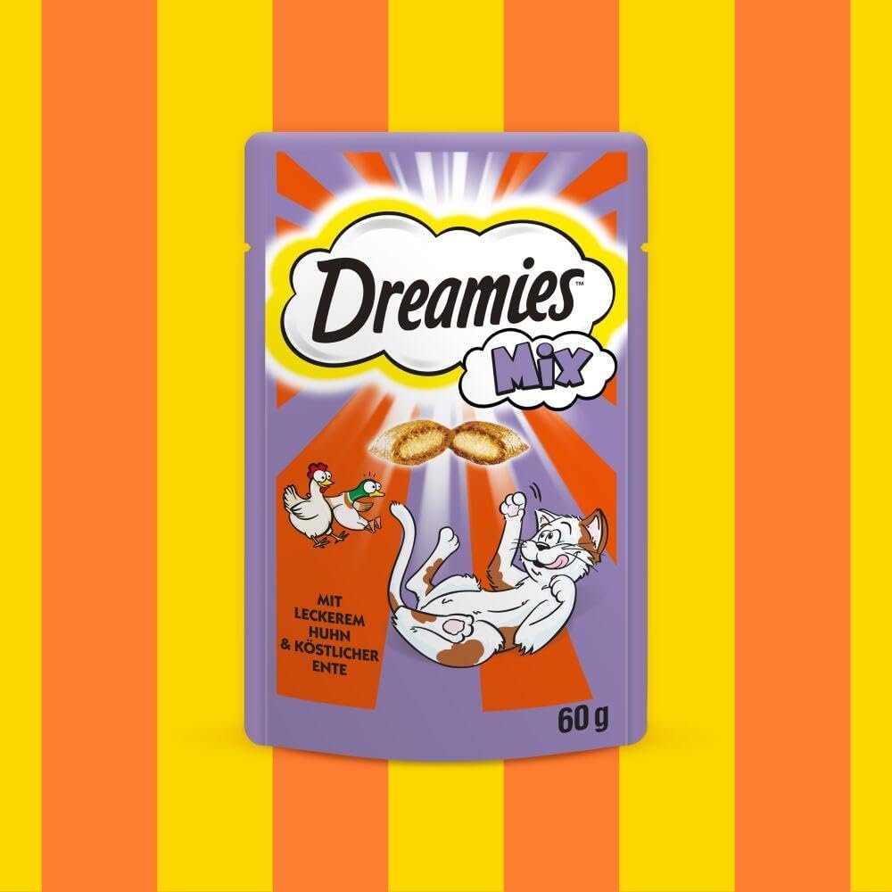 Lieferumfang: 6 x 60 g Dreamies Mix in wiederverschließbarer Verpackung, Katzenfutter mit Geflügel, nur 2 kcal pro Stück, für Freigänger- und Hauskatzen, knuspriger Snack für unsere Kleinen