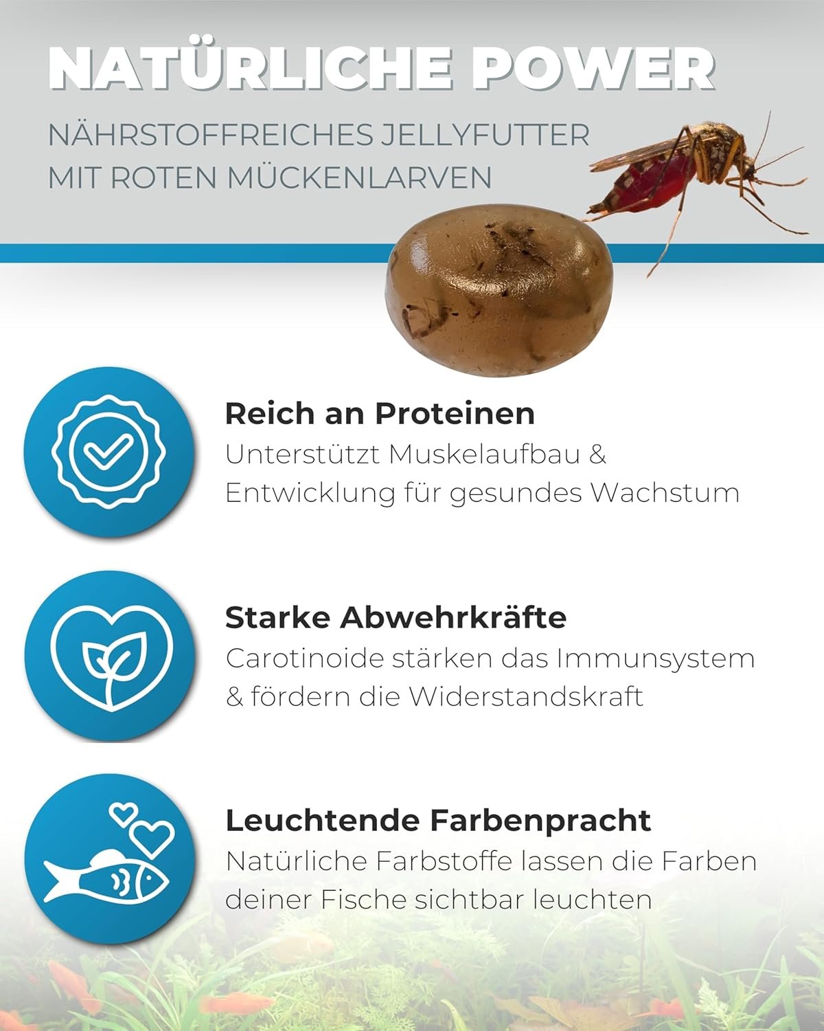 Hochwertige Nährstoffversorgung – Unser Geleefutter mit roten Mückenlarven ist eine hervorragende Quelle für erstklassiges tierisches Protein, das für das Wachstum Ihrer Fische unerlässlich ist.
