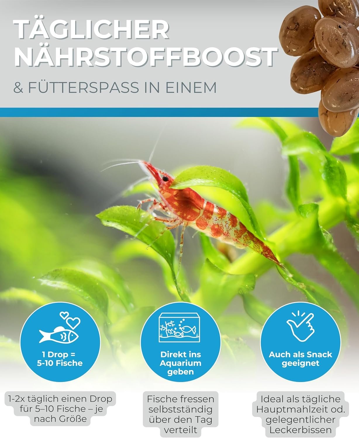 Vielseitiges Zierfischfutter – Gel-O-Drops eignen sich perfekt zur täglichen Fütterung aller tropischen Zierfische und können eine Fütterung mit Frostfutter zu 100 % ersetzen.