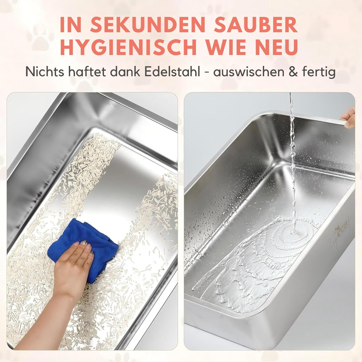 Hygienisch und geruchlos (hochwertiger Edelstahl): Verabschieden Sie sich von porösem Kunststoff. Bleibt dauerhaft antibakteriell, geruchsneutral und wie neu. Einfach abwischen, fertig.