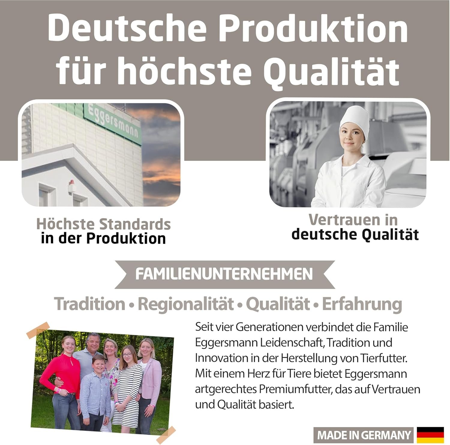 Deutsche Produktion: Seit mehr als 50 Jahren steht Eggersmann für hochwertige Futtermittel. Unsere Produkte werden nach höchsten Qualitätsstandards in unserer eigenen Produktion im Weserbergland hergestellt.