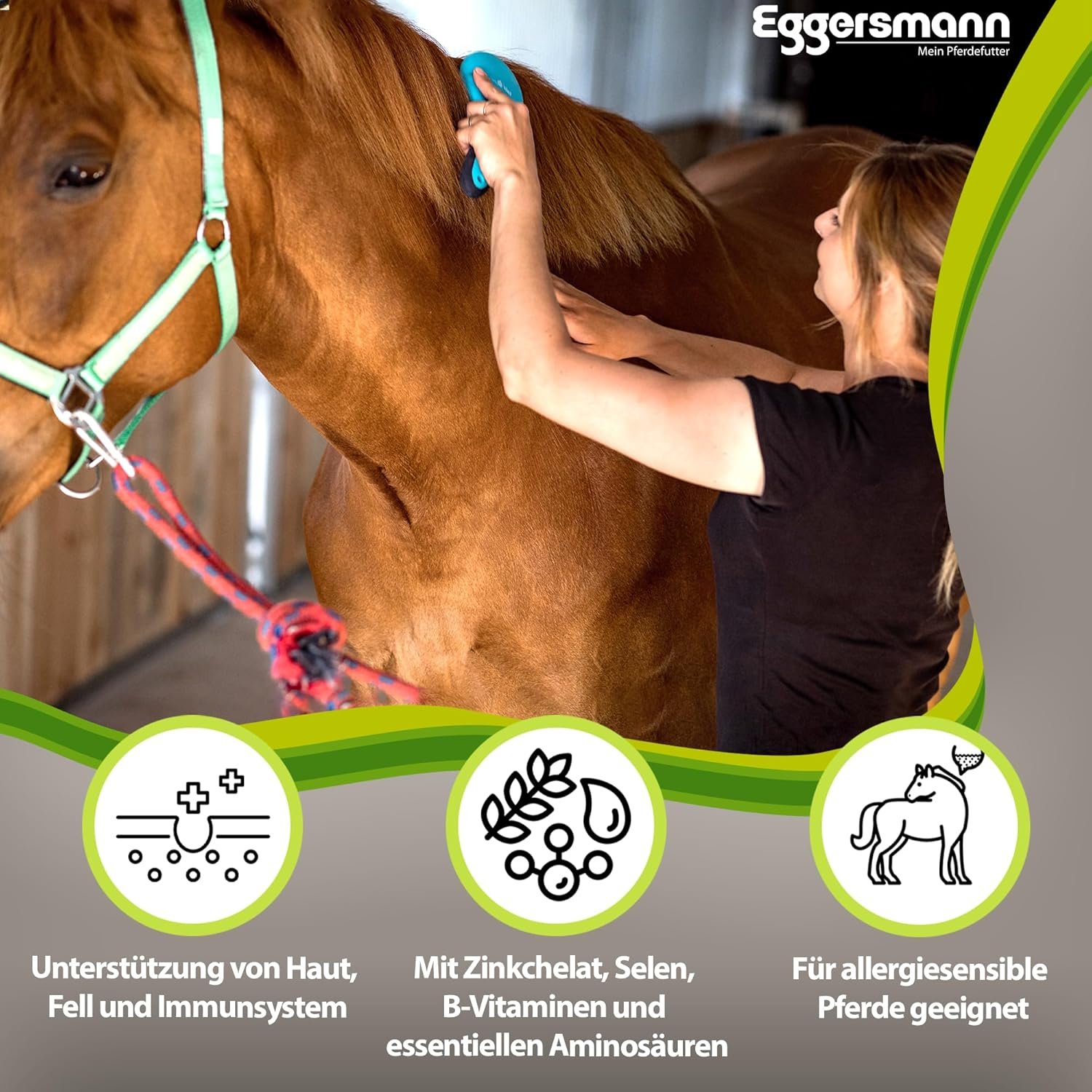Perfekt kombiniert: Das Ergänzungsfuttermittel ist reich an Zinkchelat, Selen, B-Vitaminen und essentiellen Aminosäuren, die zu einer gesunden Haut und glänzendem Fell beitragen. Ausgewählte Kräuter regen zudem den Haut- und Fellstoffwechsel an.