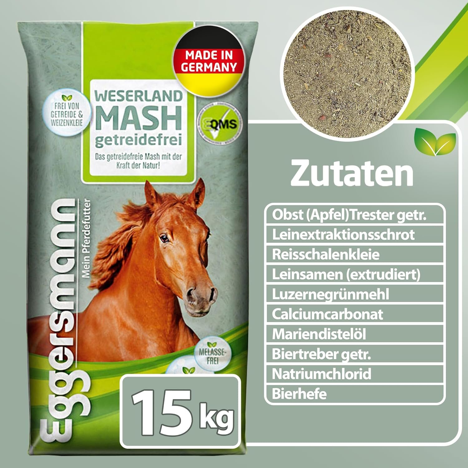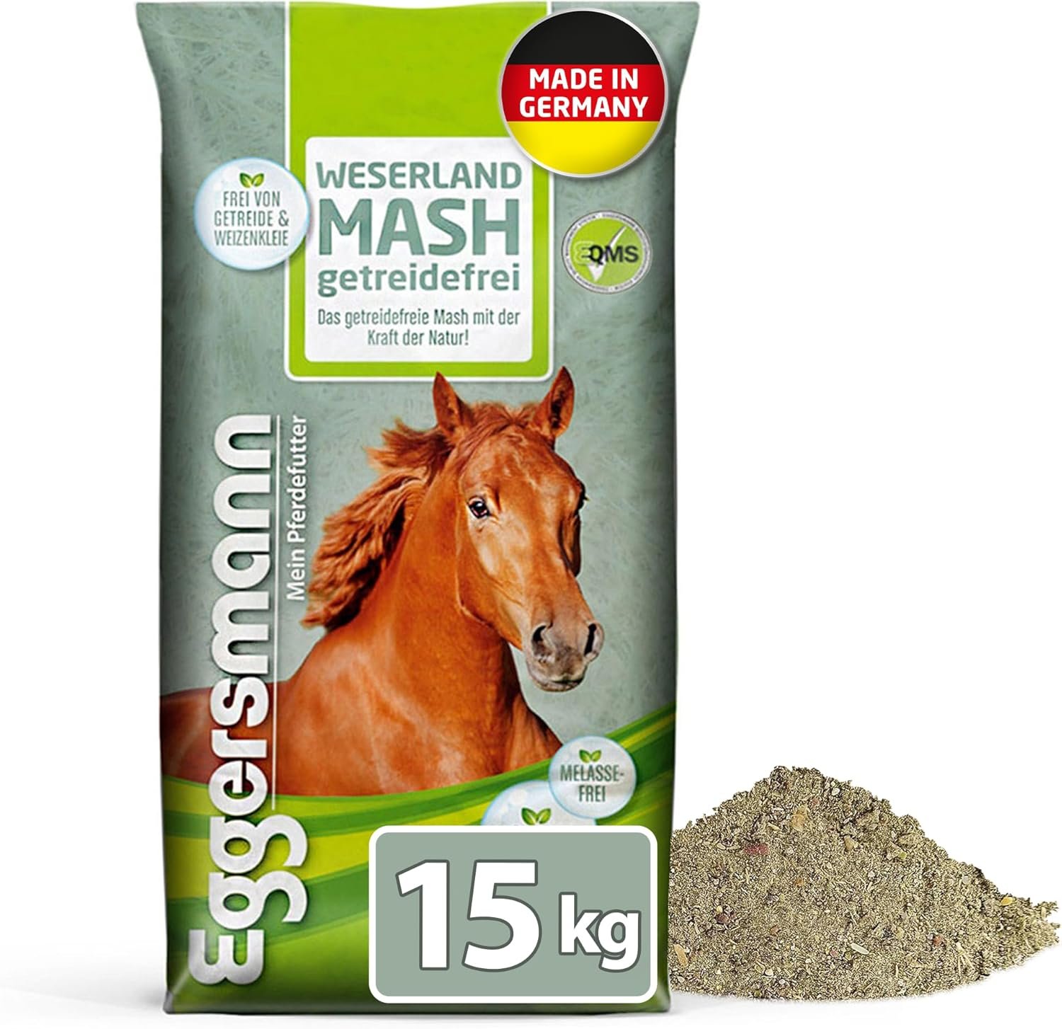 Getreidefrei: Das Mash enthält wertvolle Naturstoffe mit essentiellen Fettsäuren, die den gesamten Stoffwechsel unterstützen. Durch den Verzicht auf Getreide, Melasse und Weizenkleie ist es auch für Pferde mit Stoffwechselproblemen geeignet.