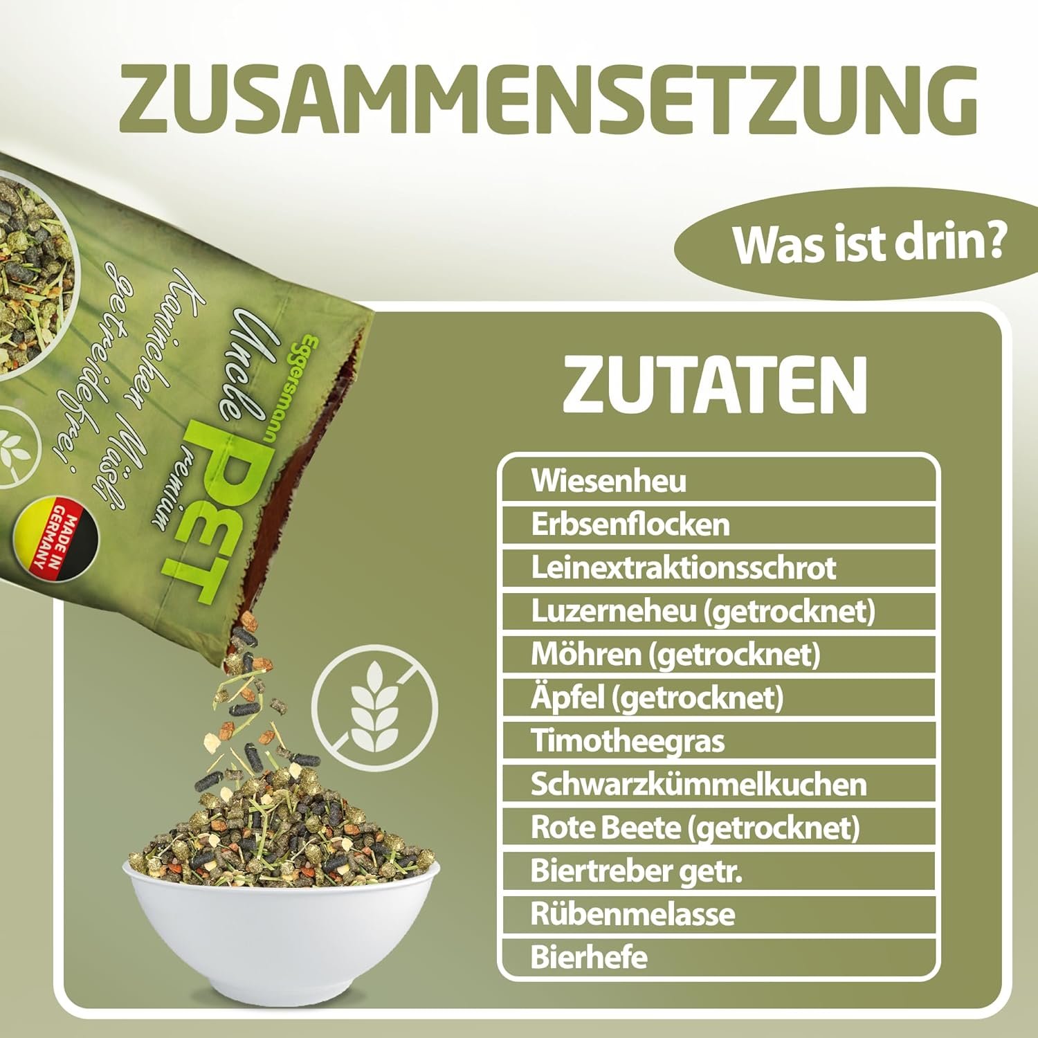 Frei von Getreide: Das Kaninchengetreide bietet eine optimale Nährstoffgrundlage für ein gesundes Tierleben. Da es kein Getreide enthält, ist es leicht verdaulich und auch für futterempfindliche Kaninchen geeignet.