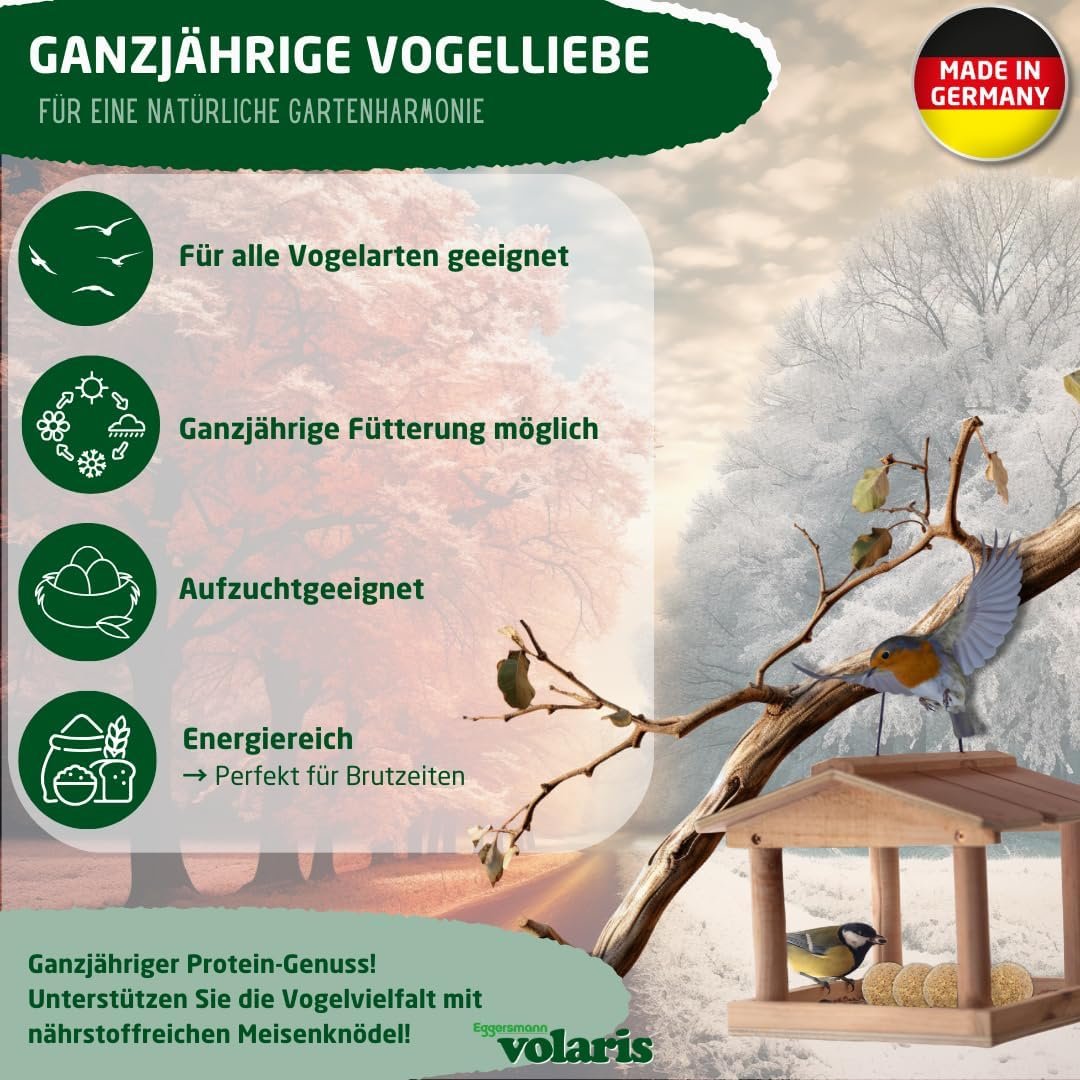 Ganzjährig erhältlich: Ob als Futterknödel für Frühling, Sommer, Herbst oder Winter – die vielseitigen Zutaten und unsere ganzjährig frische Produktion machen unsere Knödel zum Allrounder in Sachen Wildvogelfutter.