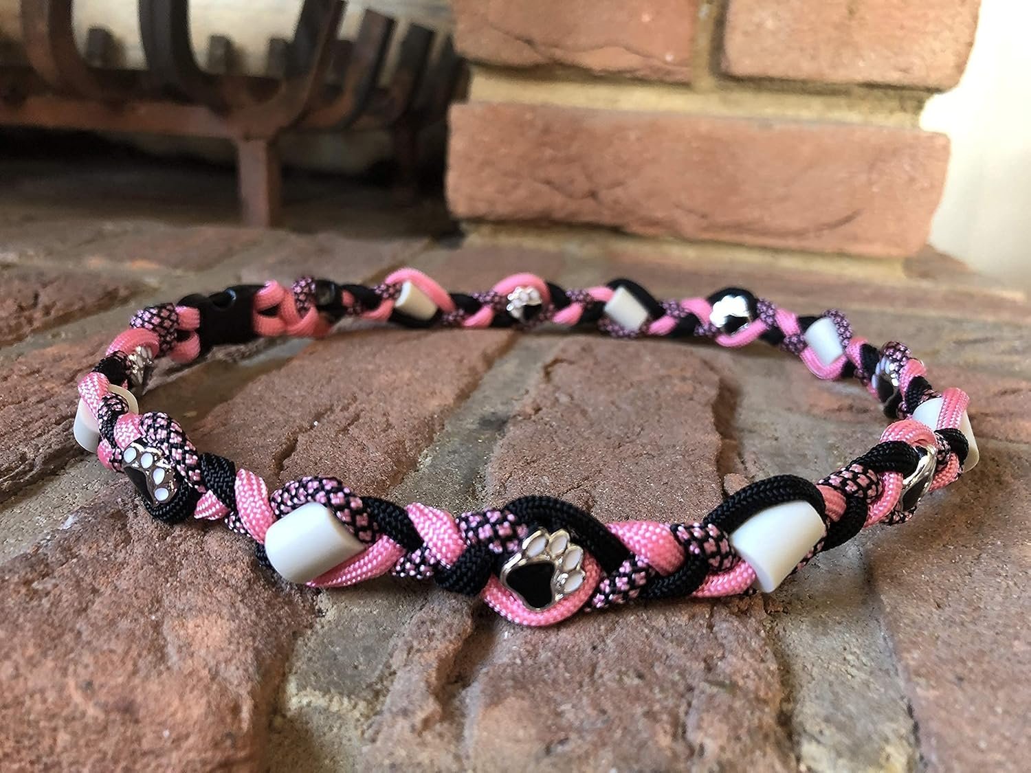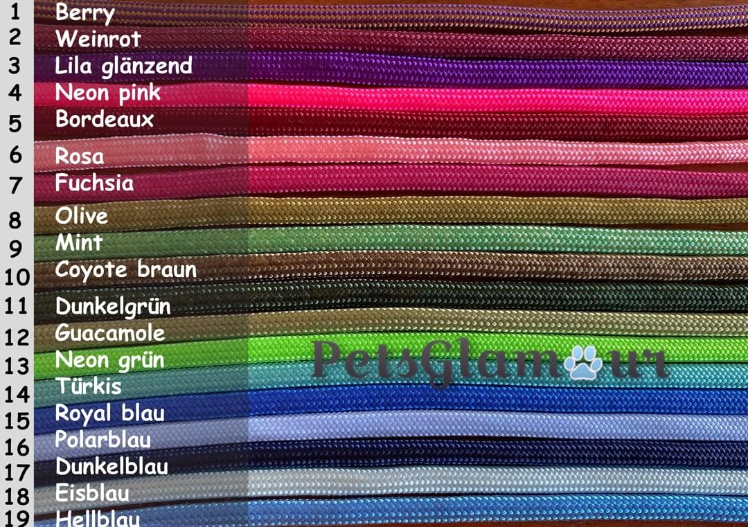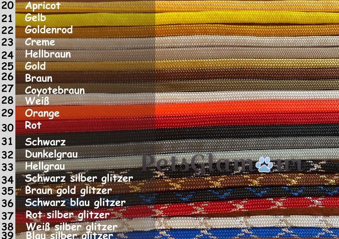 🐶 Verschlussarten: Kordelstopper (damit ist das Halsband längenverstellbar, muss aber über den Kopf gezogen werden.) Kunststoffschnalle (wir benötigen den genauen Halsumfang, hellschwarze Schnalle), Alu-Max-Schnalle (nicht für kleine Hunde geeignet, da das zu viel für den kleinen Hals wäre. Empfohlen für Hunde ab ca. 9 kg, robuste Schnalle). Bitte messen Sie den Halsumfang direkt am Hund.