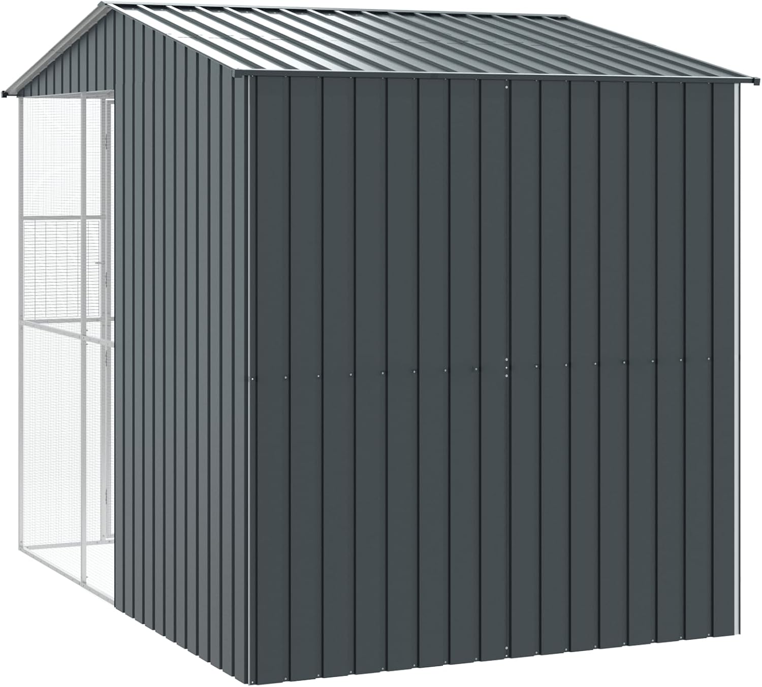 Dieser Vogelkäfig bietet Ihren gefiederten Freunden ein geräumiges, sicheres und stilvolles Zuhause. Es kombiniert Funktionalität mit modernem Design, um Ihren Garten oder Hinterhof aufzuwerten. Mit seiner robusten Stahlkonstruktion hält es lange und sorgt für einen gemütlichen Raum, der sich natürlich anfühlt. Robuste Konstruktion: Dieser Vogelkäfig ist aus starkem Stahl gefertigt, sodass er lange hält und wetterfest ist, was ihn perfekt für den Einsatz im Freien macht. Es sorgt dafür, dass Ihre Vögel sicher und geschützt sind und verhindert, dass sie entkommen oder sich verletzen. GERÄUMIGER KÄFIG Mit den Maßen 84,6 x 122,5 x 97 Zoll bietet dieser Käfig viel Platz für mehrere Vögel, um sich frei zu bewegen und bequem zu leben, was für ihr Wohlbefinden und ihr natürliches Verhalten von entscheidender Bedeutung ist. EINFACHE MONTAGE Der Käfig wird mit klaren Anweisungen geliefert, für die nur einfache Werkzeuge – ein Schraubenzieher – erforderlich sind, sodass jeder ihn problemlos zusammen mit einem Freund aufbauen kann. Modernes Design: Mit einem schlichten Anthrazit-Finish und glatten Linien sieht dieser Käfig großartig in Ihrem Außenbereich aus. Sein minimalistisches Design passt perfekt zu jeder Gartenatmosphäre und bietet einen tollen Platz für Ihre Vögel. TRANSPARENTE SICHTBARKEIT Durch die durchsichtigen Paneele können Sie Ihre Vögel aus jedem Blickwinkel leicht sehen, sodass die Interaktion mit ihnen Spaß macht. Sie können ihren spielerischen Streichen zusehen und das sorgt für Freude bei Ihnen beiden.