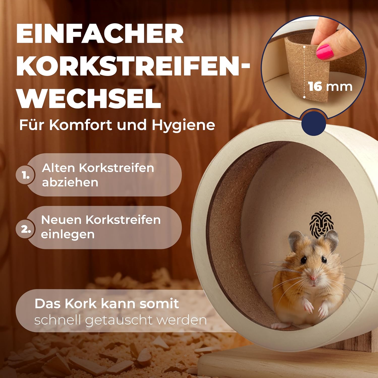 Inklusive Ersatzkorken – langlebig und hygienisch mit austauschbaren Korkstreifen für lange Nutzung. Ein Ersatz-Korkstreifen ist im Lieferumfang enthalten – einfach reinigen oder austauschen, ideal für den hygienischen Käfigaufbau und die Sauberkeit.