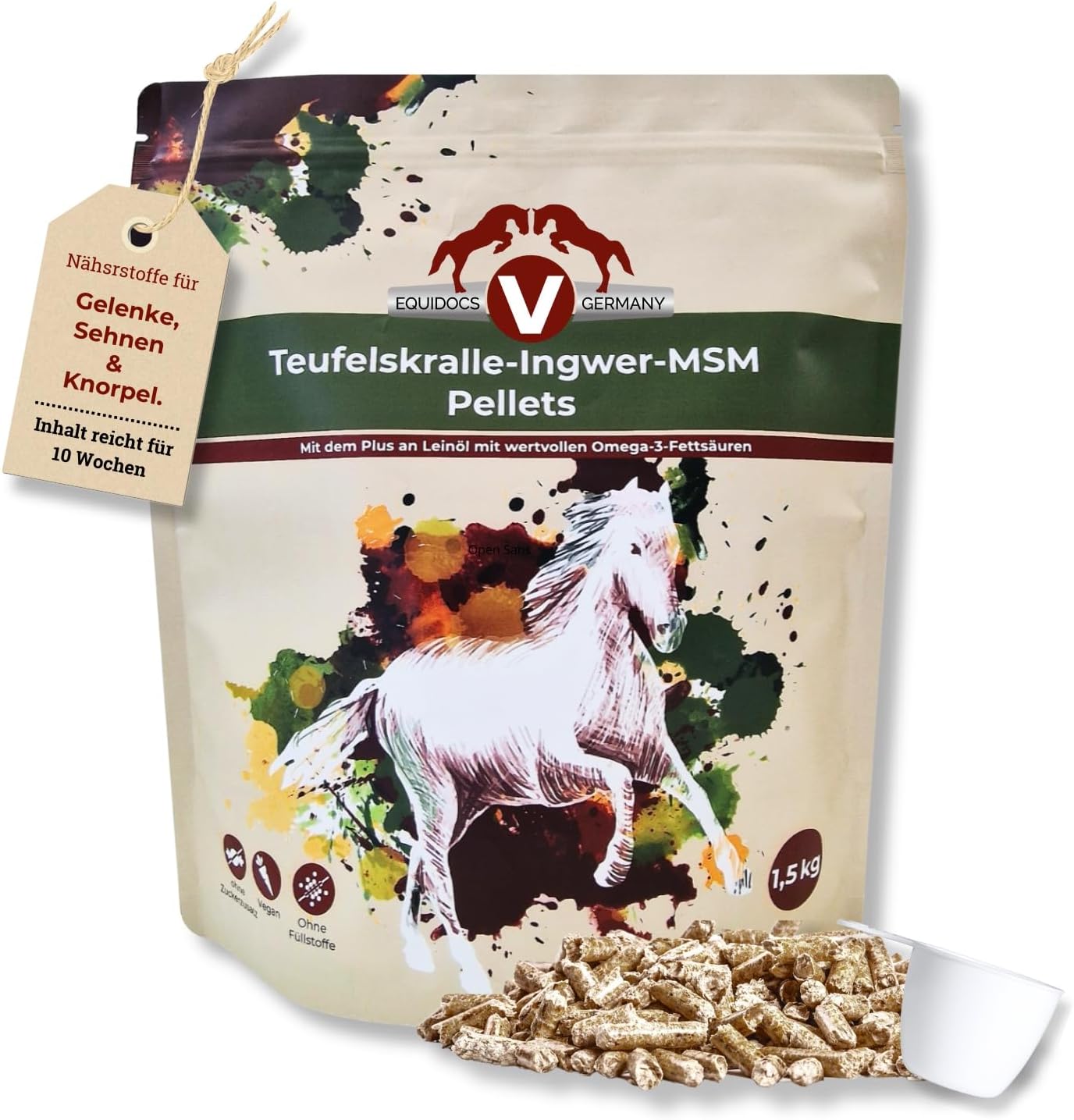 Teufelskralle Ingwer Pferd: Equidocs Teufelskralle Ingwer MSM Pellets versorgen Pferde mit wertvollen Gelenknährstoffen aus Teufelskralle, Ingwer und MSM. Für die Gesundheit des Bewegungsapparates ist diese Kombination bewährt und besonders wirksam.