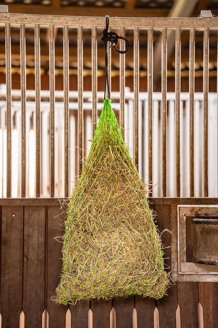 Equinate Hayville Heunetz 150 x 80 cm engmaschig grün 5 x 5 cm – Verlängert die Fresszeit auf ca. 12 Stunden – Kapazität ca. 9 kg Heu – Robustes Futternetz