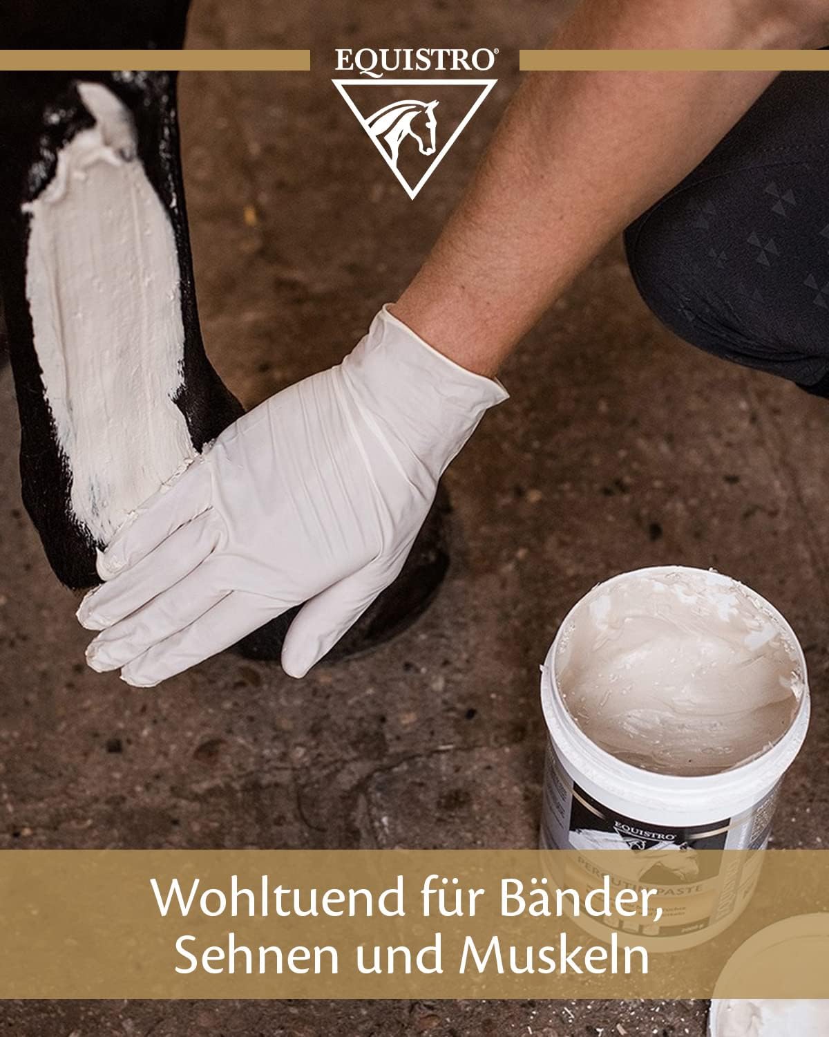 EQUISTRO Percutin Paste ist eine vielseitige Spezialpaste für Pferde, entwickelt zur äußerlichen Anwendung. Mit seiner einzigartigen Zusammensetzung aus Tonerde, Arnikaextrakt, Menthol, Isopropanol und Kamillenextrakt kann es zur Normalisierung der Flüssigkeitsverteilung im Gewebe beitragen und durch den Verdunstungseffekt für eine intensive Kühlung sorgen. Besonders wohltuend ist diese Paste bei beanspruchten Bändern, Sehnen und Muskeln. Die Anwendung ist einfach: Die gebrauchsfertige Paste wird in einer dicken Schicht aufgetragen und einwirken gelassen, bis sie austrocknet. Normalerweise löst es sich von selbst ab, verbleibende Rückstände können einfach abgebürstet oder mit Wasser abgewaschen werden. Die Paste kann beliebig oft und über einen langen Zeitraum angewendet werden, ohne dass es zu Hautirritationen oder Fellschäden kommt.