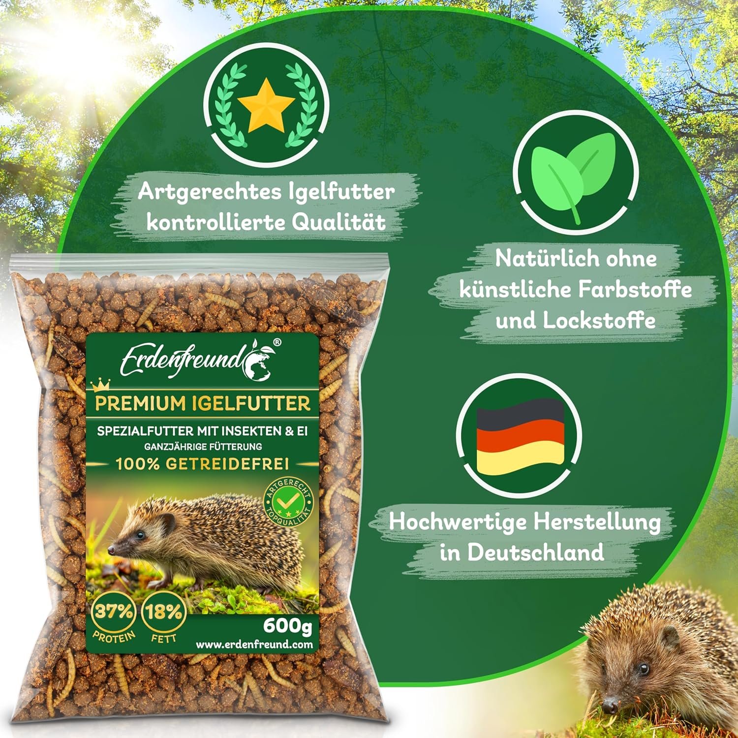 PREMIUMQUALITÄT: Premium Erdenfreund Igelfutter mit Insekten aus kontrollierter deutscher Produktion. Verantwortungsvoll für den Tierschutz entwickelt, hochwertig produziert in Deutschland