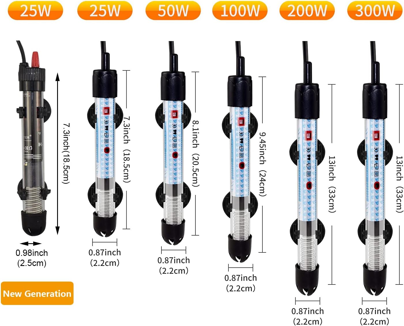 Esoes Aquarienheizer 25 W, Länge 8,1 Zoll, Netzkabel 4,9 Fuß, entwickelt für kleine Aquarien, empfohlen für Aquarien bis zu 16 Gallonen.