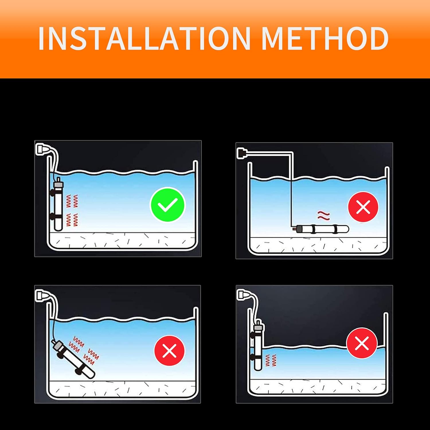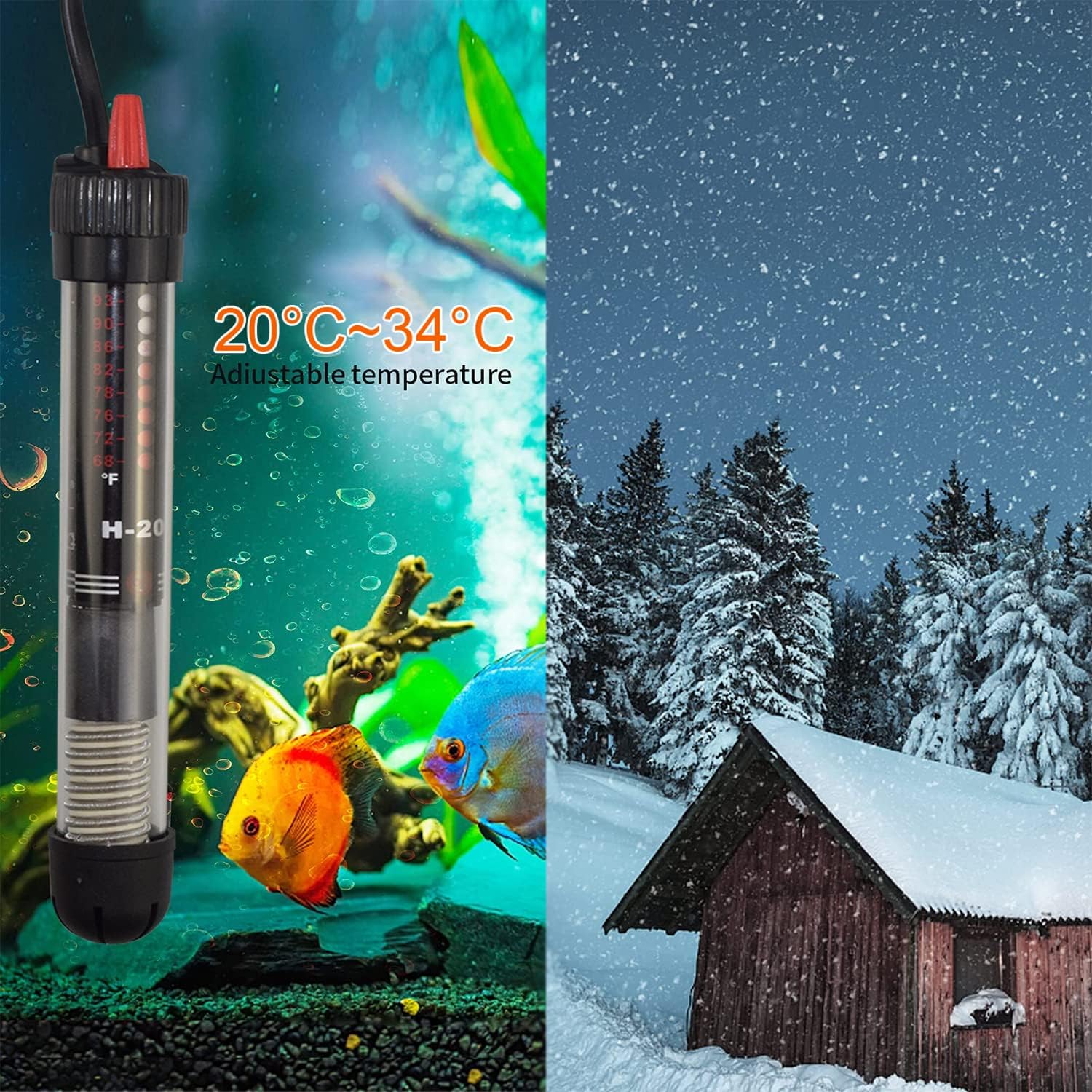 Dieser in die Aquarienheizung integrierte Thermostat hält das Wasser automatisch auf der eingestellten Temperatur, mit einer Fehlertoleranz von ± 2 °F.