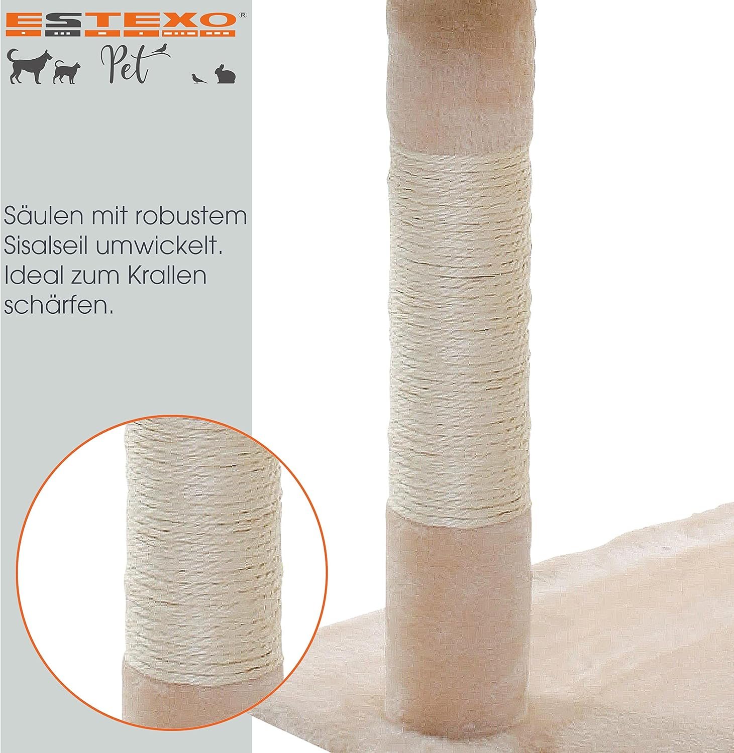Material: Spanplatte, Pappe, Sisal, Polyester; Anzahl Liegeflächen: 3; Anzahl der Höhlen: 1