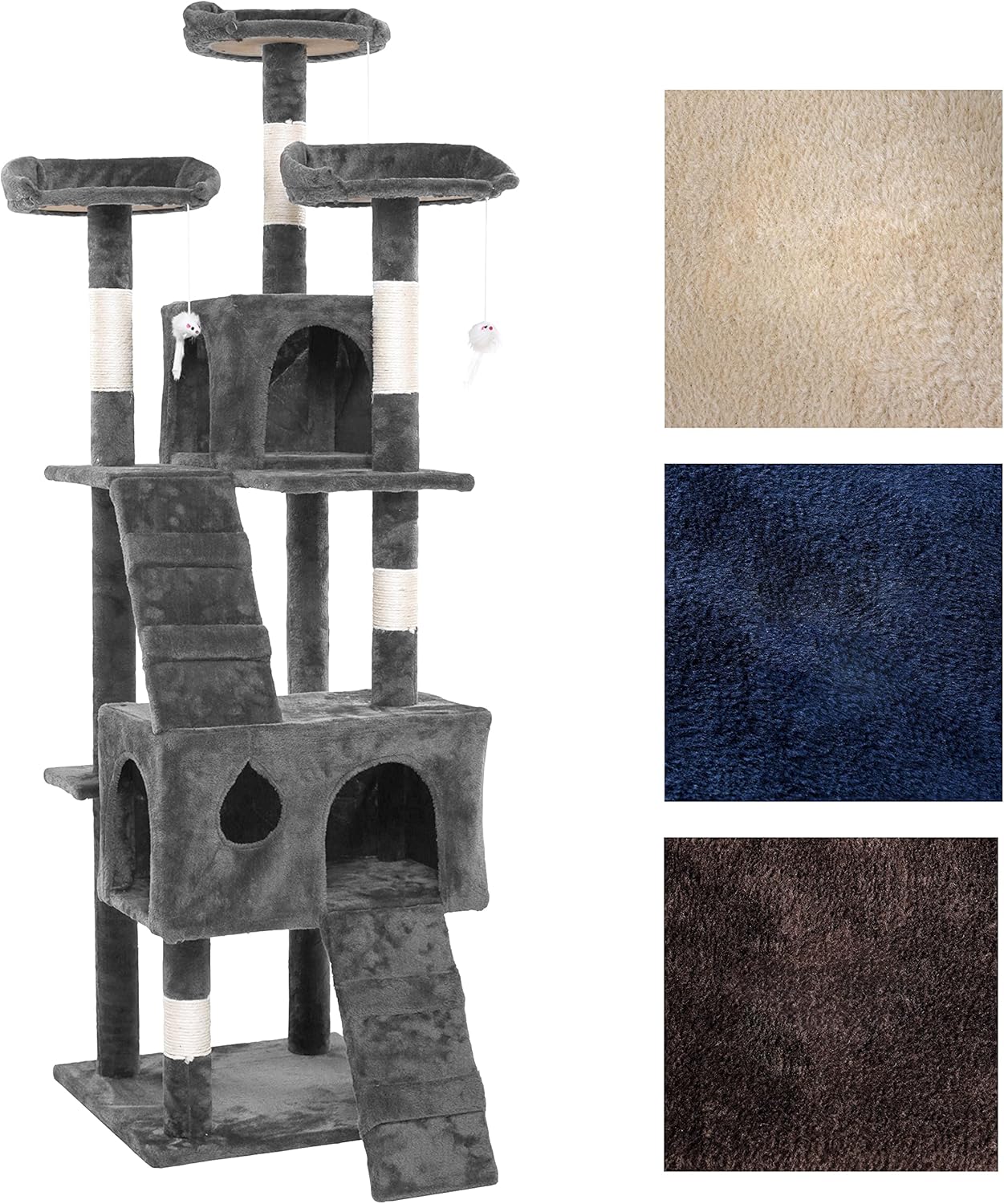 Unser 170 cm hoher Kratzbaum ist in 4 verschiedenen Farben erhältlich. Es bietet zahlreiche Möglichkeiten zum Spielen, Krallenwetzen und Entspannen. Auf den verschiedenen Ebenen gibt es viel zu entdecken: bequeme Liegeflächen, Höhlen zum Verstecken und vieles mehr.
