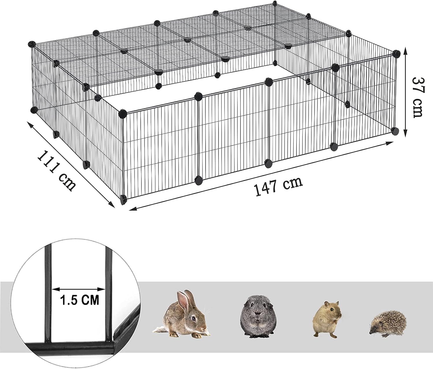 DIY-Außengehege für Kleintiere: Die Höhe, Breite und Länge dieses modularen Kaninchenzauns kann je nach persönlicher Vorstellung erweitert werden, um Schicht und Form für Innenräume wie Schlafzimmer, Wohnzimmer, Flur, Balkon, Ecke zu ändern. DIY-Auslaufgitter (Drahtabstand 1,5 cm) eignet sich besonders für Meerschweinchen, Kaninchen, Hasen, Hamster, Igel, Kätzchen, Katzen oder Welpen zum Laufen und Spielen.
