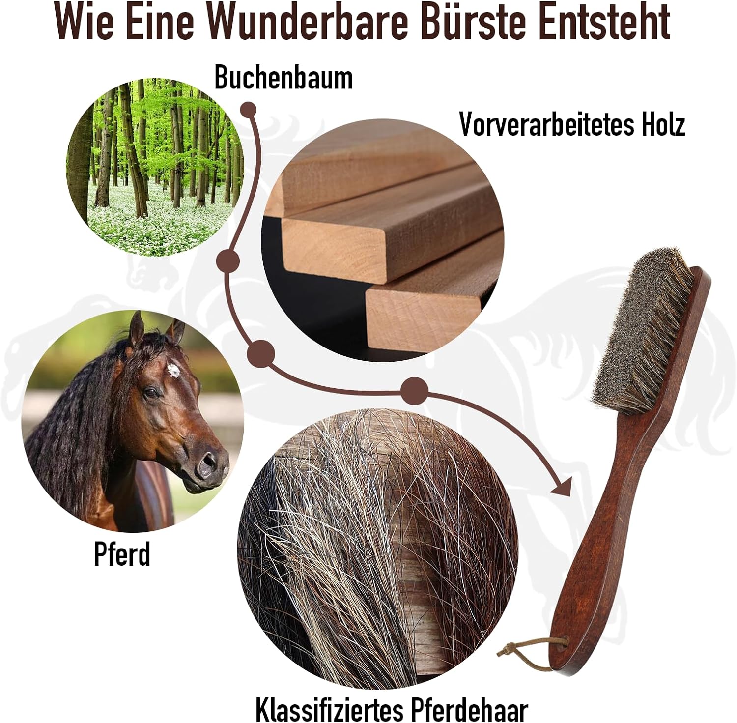Ökologische Wahl für Werkstatt & Hobby: Naturschweifbürste aus hochwertigem Pferdehaar – weich und bruchfest. Holzgriff liegt perfekt in der Hand, gratfrei, stabil und verformungsfrei. Traditionell & kraftlos aus nachhaltigen Naturmaterialien. Entfernt mühelos Sägemehl, Holzspäne und Erde. Ideal für: Filzhut/Cowboyhut/Schuhe/Kleidung/Polster/Hut/Bank/Couch/Bett.