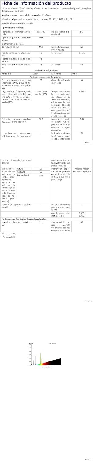 Die Exo Terra Solar Glo ist eine Quecksilberdampflampe mit eingebautem Vorschaltgerät, die in Standard-Keramikfassungen passt (ein Vorschaltgerät ist nicht erforderlich). Es kann in Verbindung mit dem Exo Terra Light Dome (PT2057), dem Exo Terra Reptile Dome (PT2349) oder dem Exo Terra Wire Light (PT2062) verwendet werden.