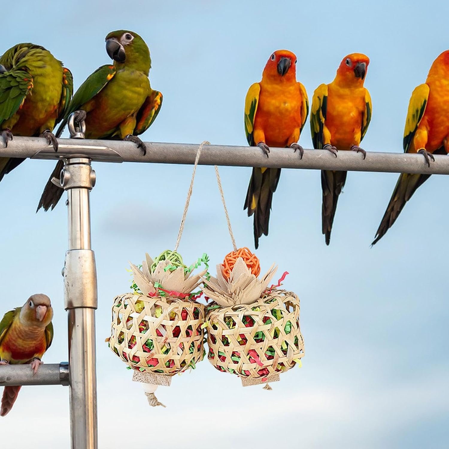 3. [Easy to hang and use] Dank des hängenden Designs lässt sich das Spielzeug problemlos an jedem Käfig oder Gehege befestigen und bietet Ihrem gefiederten Freund einfachen Zugang zum Spielen und Knabbern.