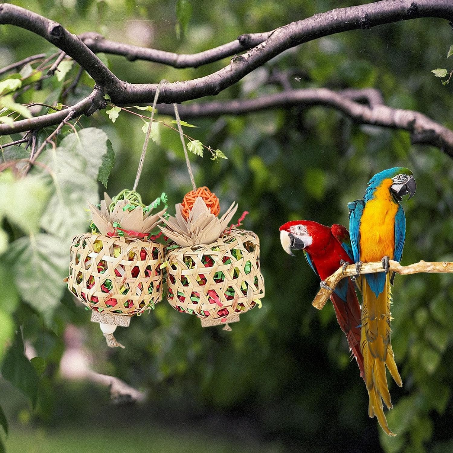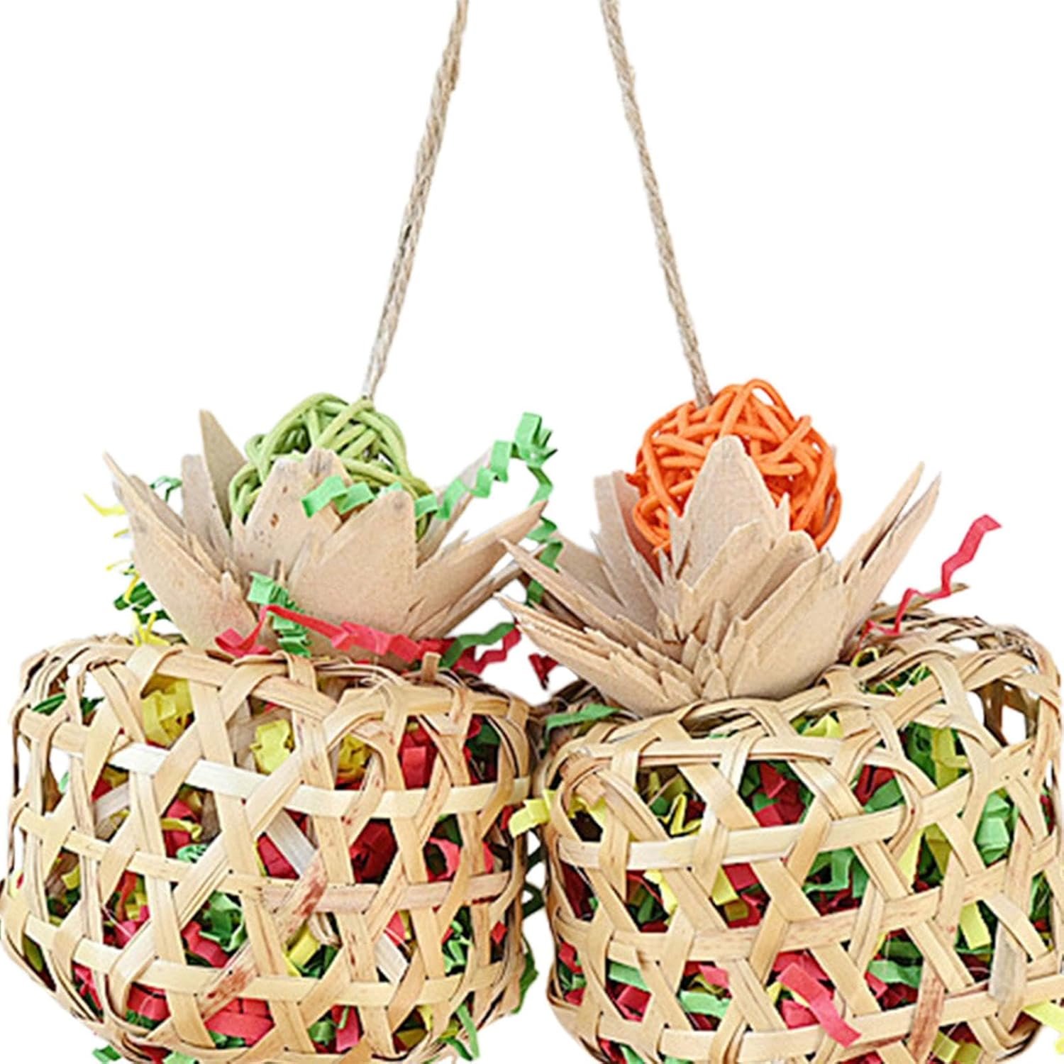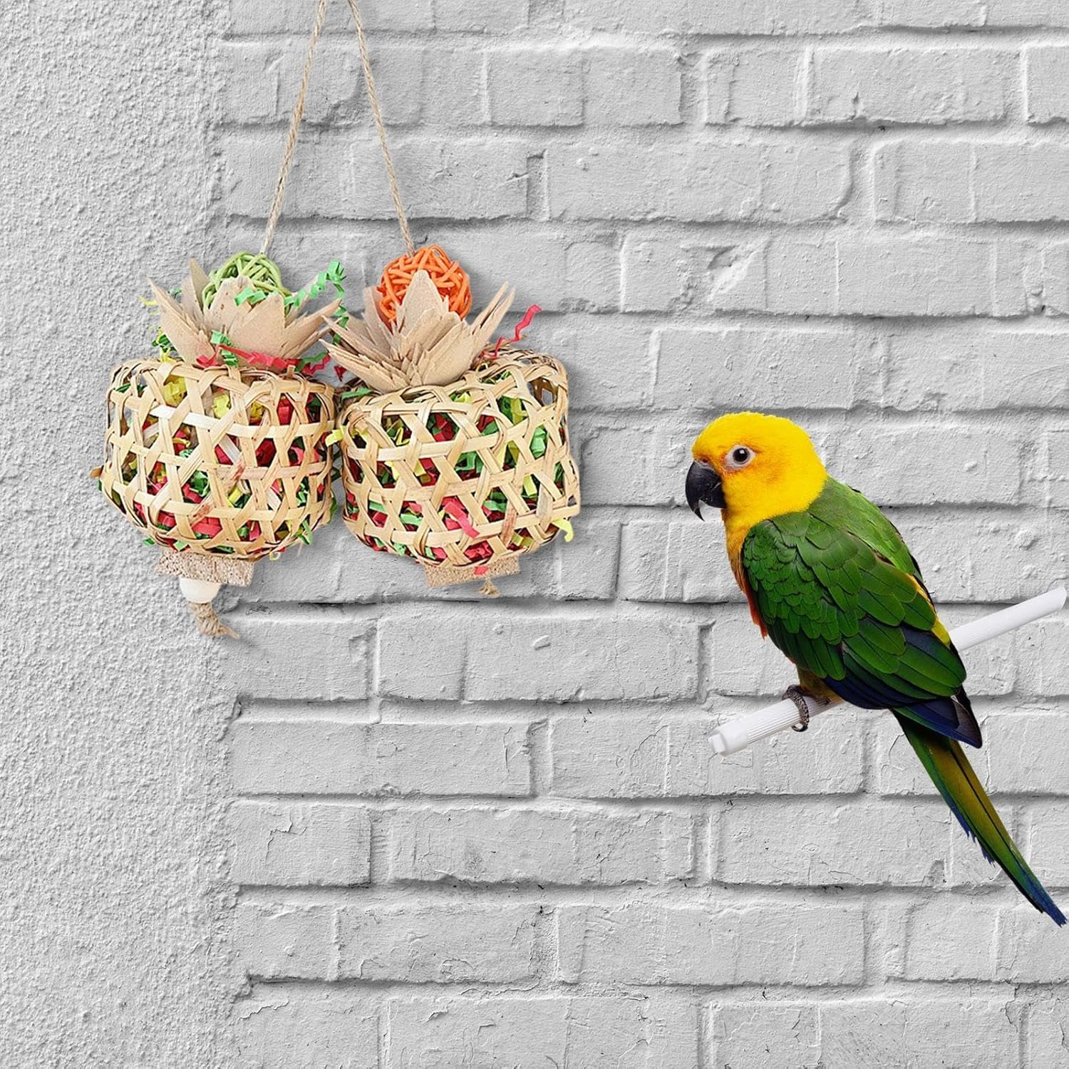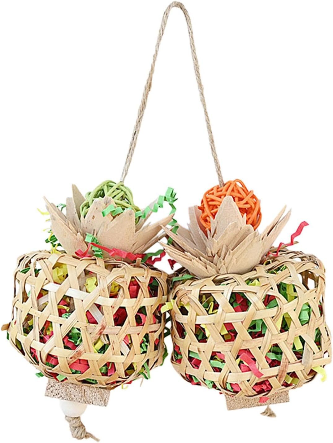 1. Fesselt und unterhält Ihren gefiederten Freund: Dieses farbenfrohe Papageienspielzeug wurde entwickelt, um Ihren gefiederten Freund zu fesseln und zu unterhalten. Es bietet eine unterhaltsame Gelegenheit zum Knabbern und Zerkleinern und beugt so effektiv Langeweile vor.