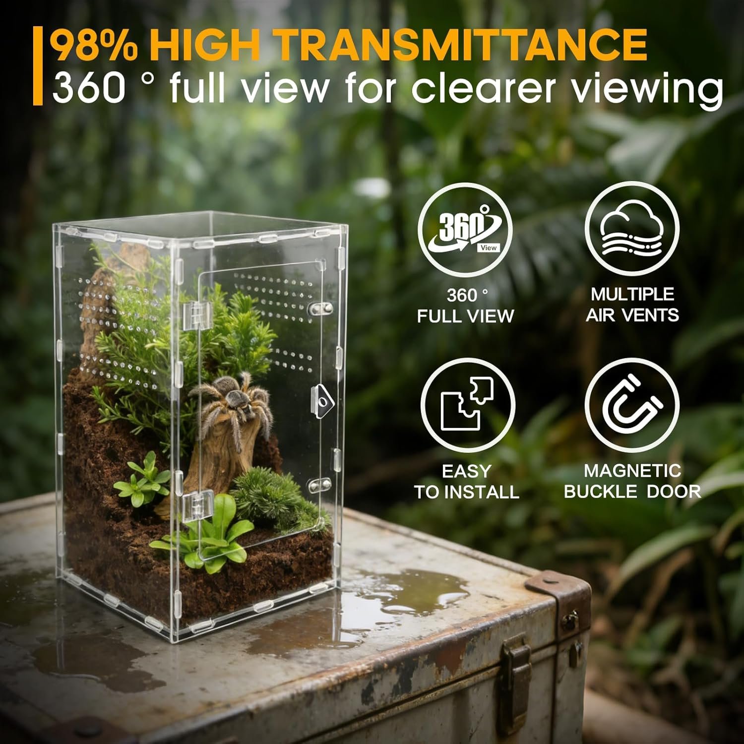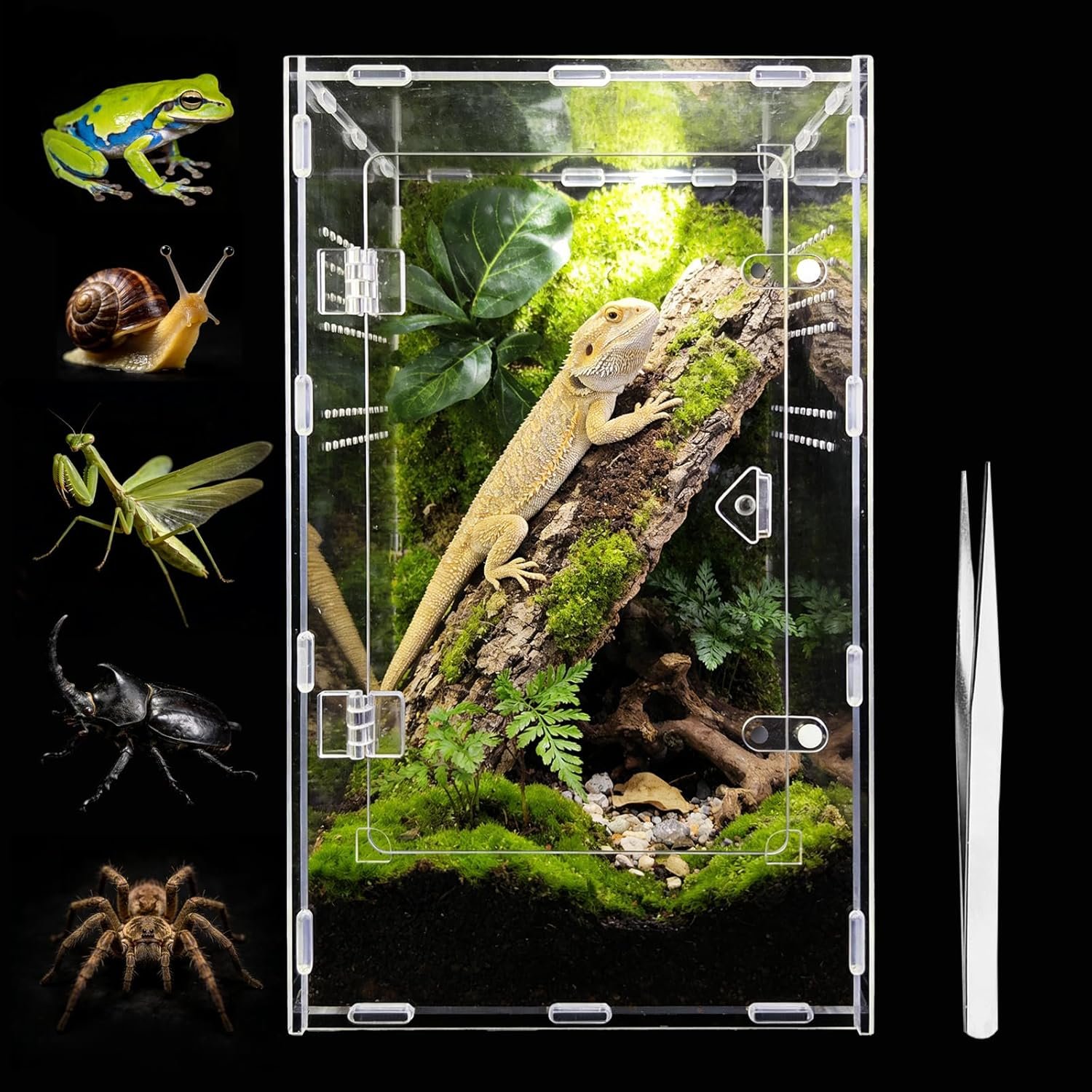 Geeignet für verschiedene Tierarten: Geeignet für Spinnen, Schnecken, kleine Frösche, Gottesanbeterinnen, Einsiedlerkrebse, Eidechsen sowie junge Reptilien. Ein gut belüftetes Terrarium zur Haltung kleiner Wirbelloser und Reptilien.
