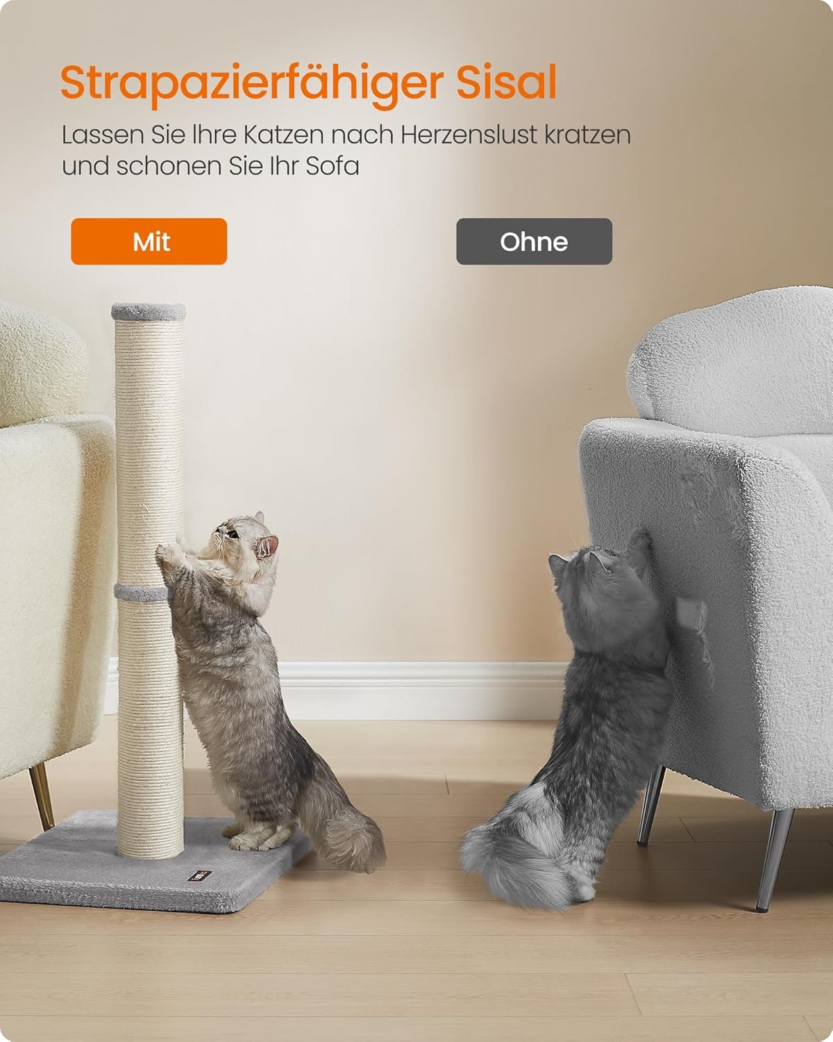 Große Kratzfläche: Dieser Sisalstamm bietet ausreichend Platz für endlosen Kratzspaß und befriedigt den natürlichen Kratztrieb Ihrer Katze, mit beiden Pfoten zu kratzen