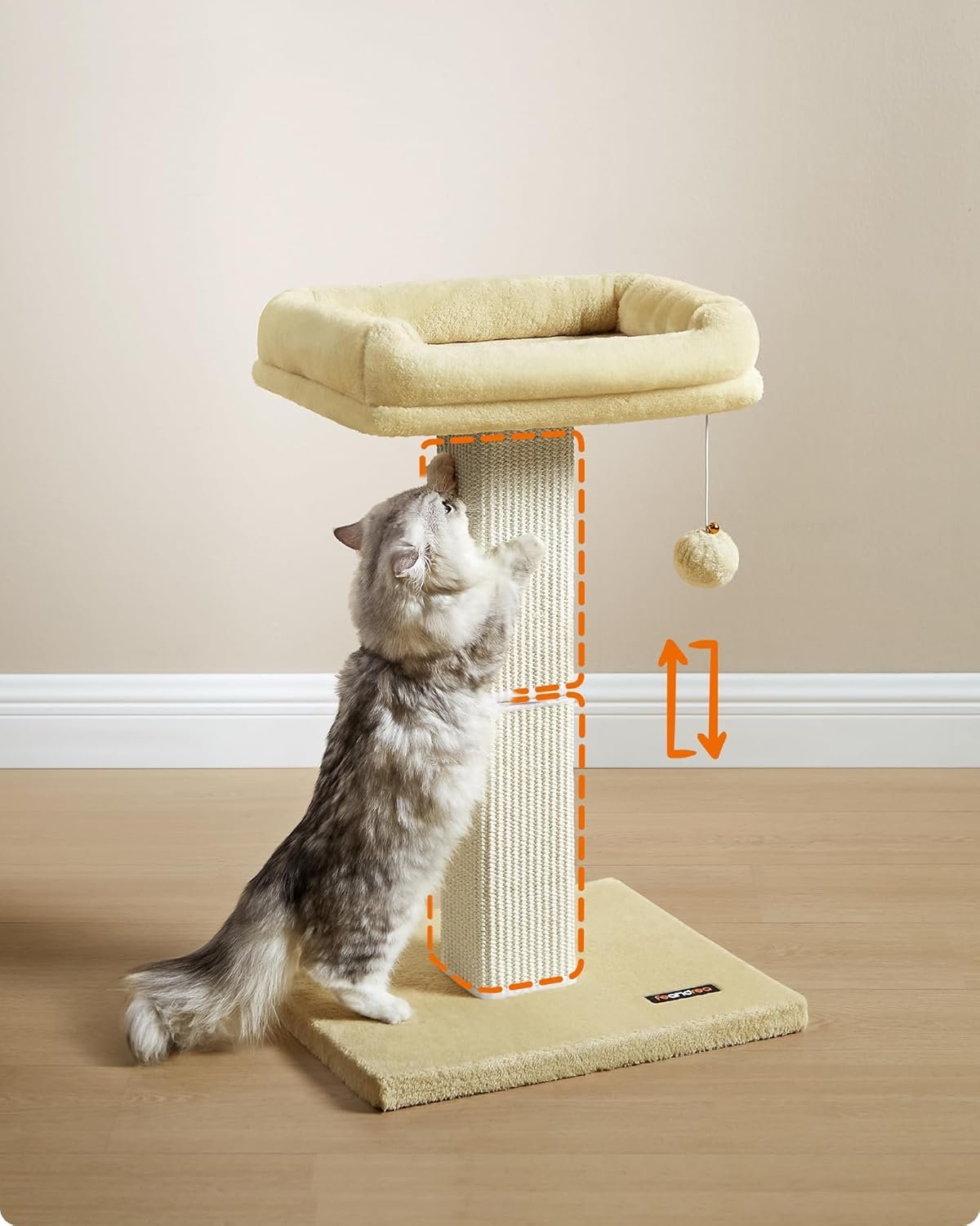 Breite Plattform, angemessene Höhe: Die Plattform des Kratzbaums misst 40 x 30 cm und ist für kleine und mittelgroße Katzen geeignet, die ein Nickerchen machen möchten. Die Höhe von 62 cm ist genau richtig, damit Ihre Katze aus dem Fenster schauen kann