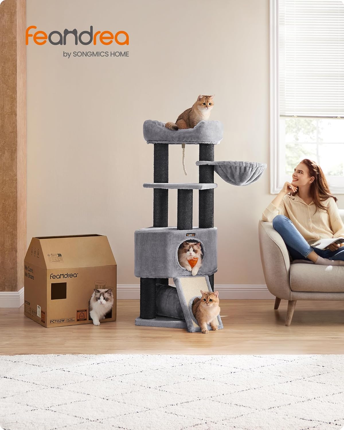 Katzenkratzbaum Feandrea in dezentem Hellgrau/Schwarz – für stilvolle Samtpfoten mit sechstem Sinn für gemütliche Katzenmöbel.