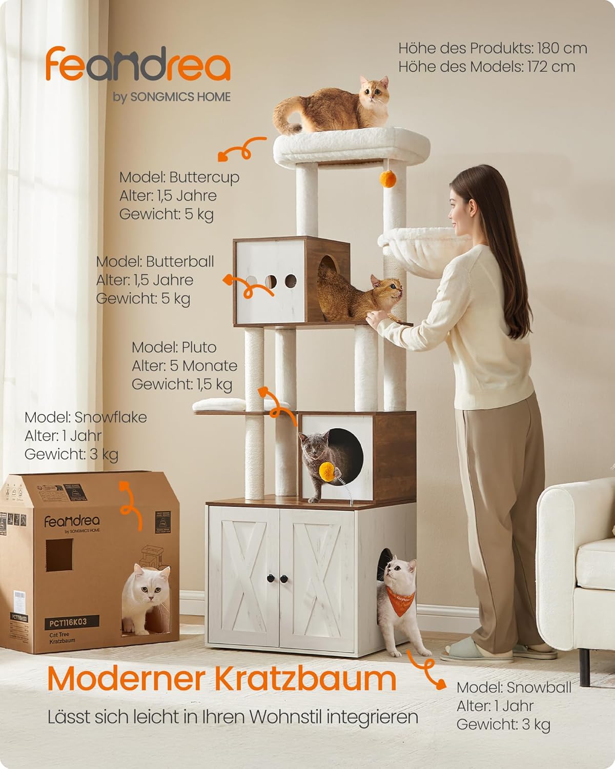 [2 IN 1 CAT HOUSE] Kratzbaum und Katzenkloschrank in einem – dieses Katzenmöbelstück bietet Ihrem pelzigen Freund einen eigenen Raum. Stellen Sie es in eine Ecke, dann ist alles, was Sie brauchen, an einem Ort – ein echter Platzsparer!