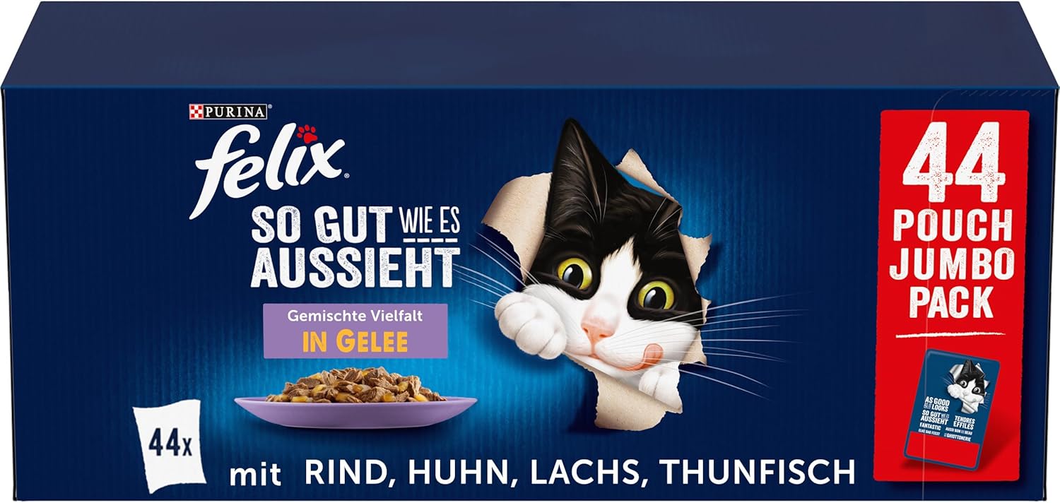 Zum Warenkorb hinzufügen Zum Warenkorb hinzufügen Kundenrezensionen 4,6 von 5 Sternen 2.283 4,6 von 5 Sternen 1.219 4,7 von 5 Sternen 6.170 4,7 von 5 Sternen 2.075 4,7 von 5 Sternen 2.007 Preis – keine Daten 27,54 € 27,54 € 43,99 € 43,99 € – keine Daten – keine Daten Flavour Felix So gut wie es aussieht. Geschmacksvielfalt aus dem Wasser in Gelee mit Lachs, Scholle, Kabeljau und Thunfisch oder Felix, so gut wie es aussieht. Probieren Sie die Vielfalt des Landes in Gelee mit Huhn, Rind, Kaninchen und Lamm. Felix ist so gut wie es aussieht. Gemischte Sorte Junior in Gelee mit Rindfleisch, Huhn, Lachs und Sardine. Felix ist so gut wie es aussieht. Gemischte Sorte Senior in Gelee mit Rindfleisch, Huhn, Lachs und Sardine. Felix ist so gut wie es aussieht. Doppelt köstliche Geschmacksvielfalt vom Land in Gelee mit Rind und Geflügel mit Pute & Leber mit Huhn und Niere. Geschmacksvielfalt aus dem Wasser in Gelee mit Seelachs und Lachs mit Lachs und Sardine. Geschmacksvielfalt vom Land Felix Sensations Gelées Geschmacksvielfalt vom Land mit Rind, Pute, Ente und Lamm oder Felix Sensations Gelées Geschmacksvielfalt vom Wasser mit Sardine, Lachs, Seelachs und Forelle. Produktvorteil: Felix so gut wie es aussieht, zarte Stücke und saftiges Gelee vereint zu einem unwiderstehlich leckeren Gericht. Felix so gut wie es aussieht, leckere Mahlzeiten für Kätzchen mit zarten Gebissstücken und saftigem Gelee, enthält alles, was das Kätzchen braucht, um ein gesunder erwachsener Racker zu werden. Felix so gut wie es aussieht, köstliche Mahlzeiten für ältere Katzen mit zarten Gebissstücken und saftigem Gelee, enthält alles, was die ältere Katze braucht, um jung zu bleiben. Felix so gut wie es aussieht. Double Delicious kombiniert zwei köstliche Geschmacksrichtungen aus zarten Stücken für doppelten Genuss. Felix Sensation Gelees mit zarten Stücken, serviert in verschiedenen köstlichen und leckeren Gelees für einen großartigen Geschmack. Packungsgröße: 85 g Portionsbeutel, 4, 12 + 24 Multipack, 85 g Portionsbeutel, 12 Multipack, 85 g Portionsbeutel, 12 Multipack, 85 g Portionsbeutel, 12 + 24 Multipack, 85 g Portionsbeutel, 12 + 24 Multipack, Alter der Katze (Junior / Erwachsener / Senior) Erwachsener Junior Senior Erwachsener Erwachsener Futterart (Alleinfuttermittel / Ergänzungsfuttermittel) Alleinfuttermittel Alleinfuttermittel Alleinfuttermittel Alleinfuttermittel Alleinfuttermittel