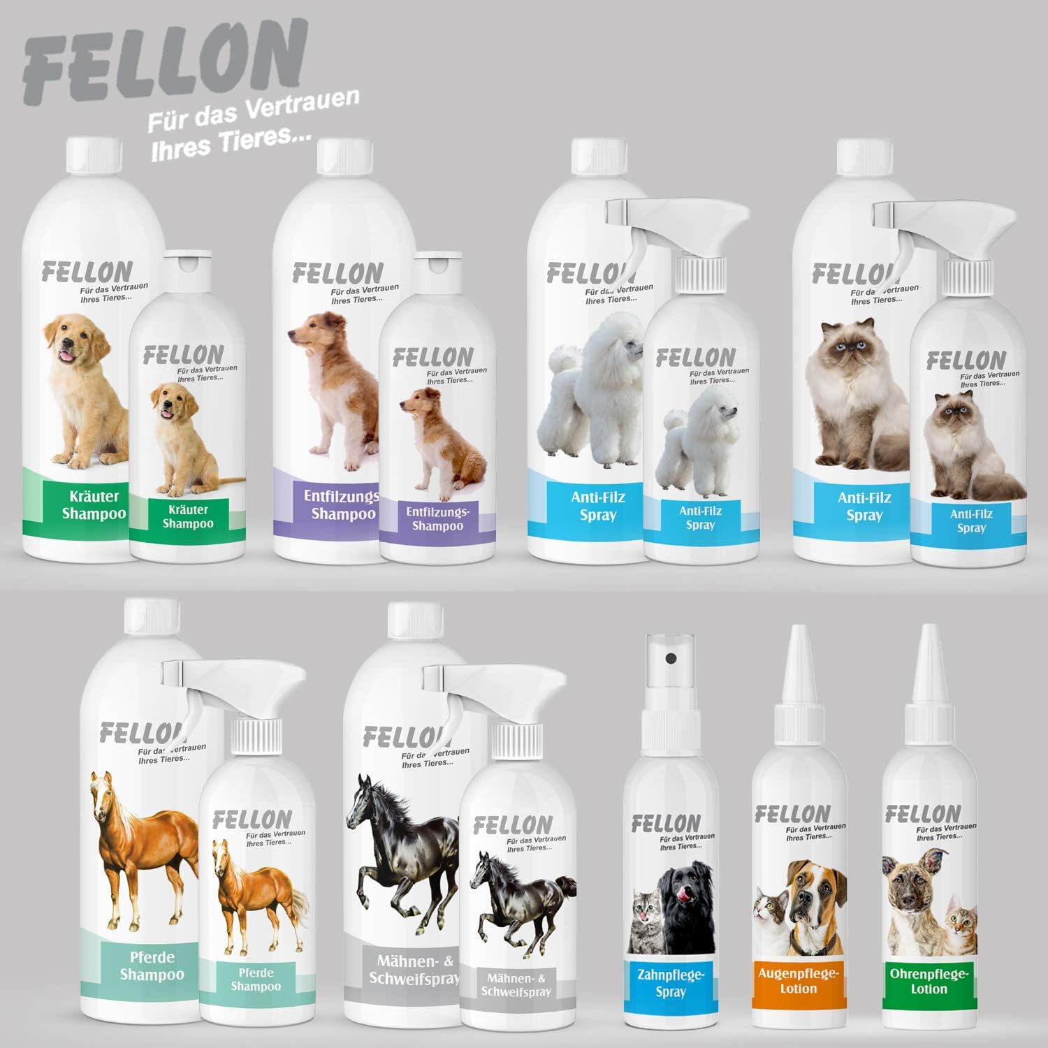 Neben unserem Entfilzungsspray für Hunde bieten wir auch viele weitere Pflegeprodukte für andere Haustiere wie Katzen und Pferde an