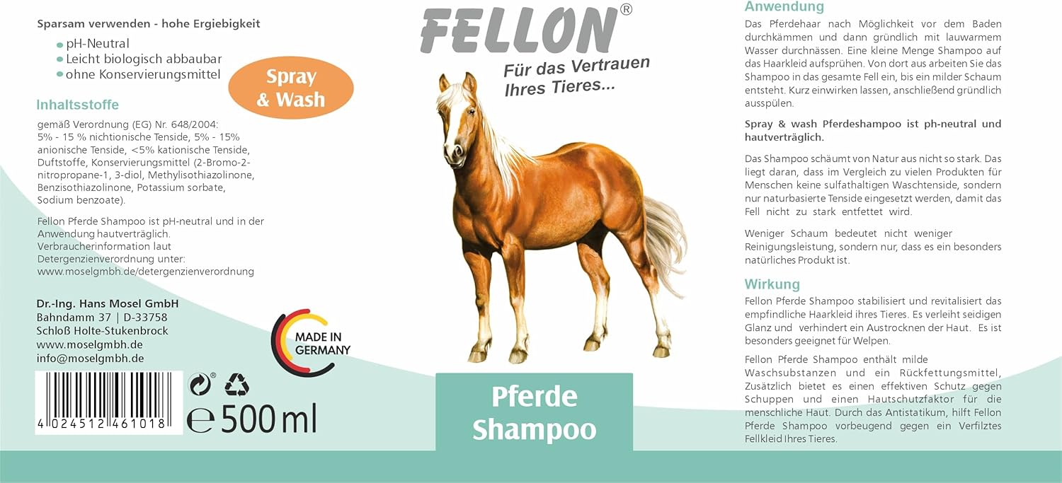 Das Pferdeshampoo von Fellon vereint wertvolle natürliche Wirkstoffe zu einem wirksamen Produkt für die regelmäßige Fellpflege