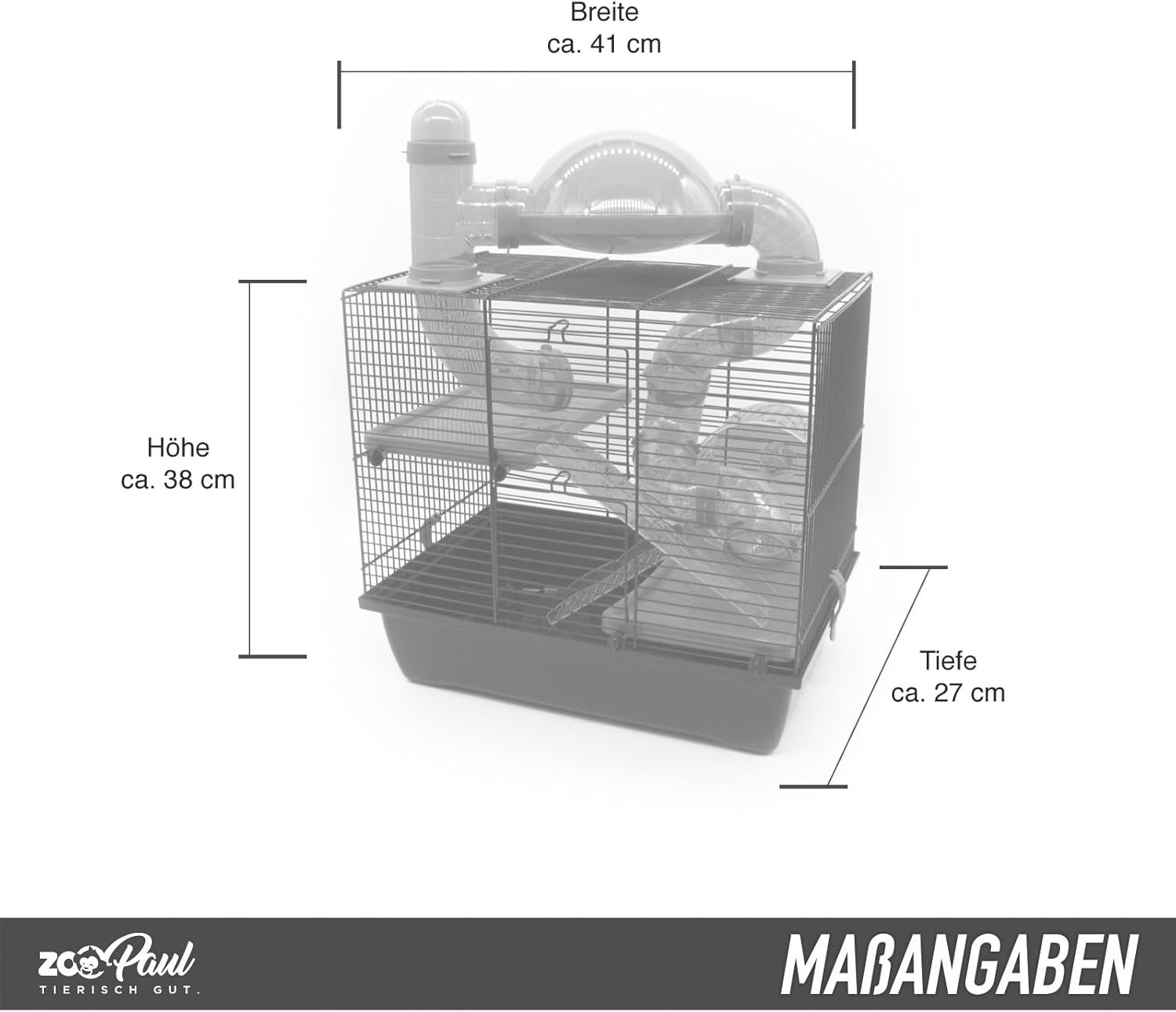 Kompakte Maße: 41 x 38 x 27 cm (B x H x T) – ideal für Hamster und andere kleine Nagetiere, platzsparend und wohnraumtauglich
