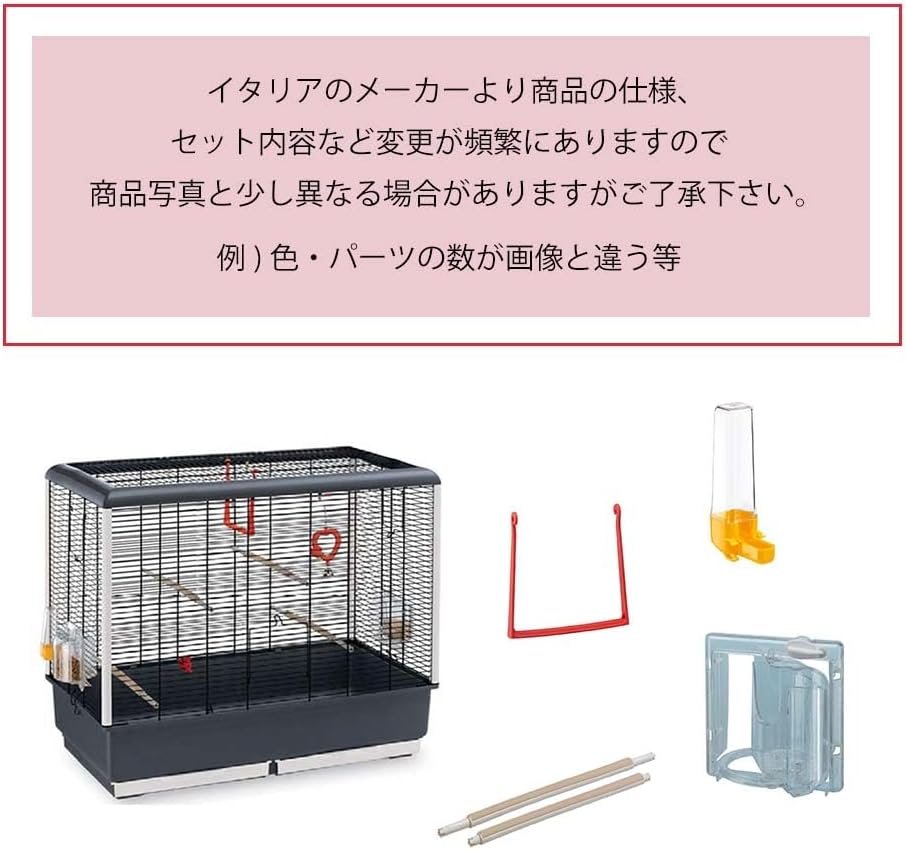 Der Käfig wird komplett mit allem notwendigen Zubehör geliefert, um mehreren Vögeln einen komfortablen Lebensraum zu bieten: zwei Futternäpfe, eine Tränke, eine Pinzette für Gemüse, vier ausziehbare (Teleskop-)Sitzstangen mit rutschfester Gummiabdeckung, eine Schaukel und ein Spiegel mit Glocke. Für das Spiel.