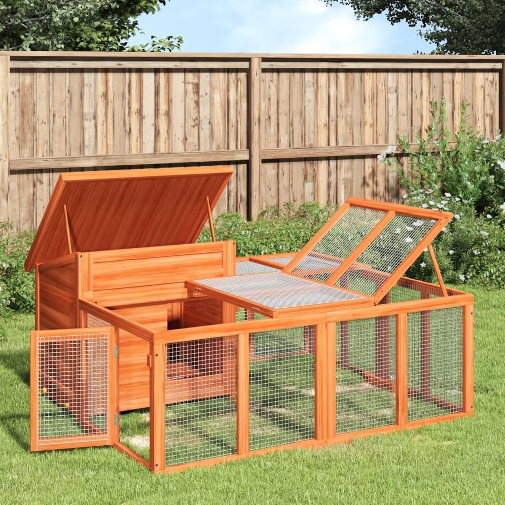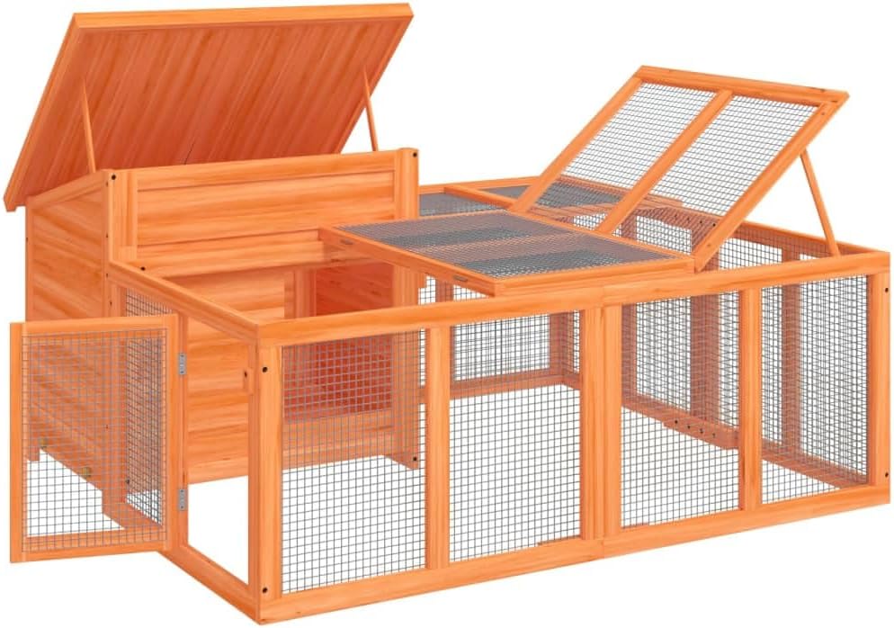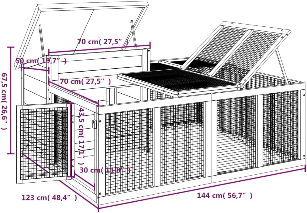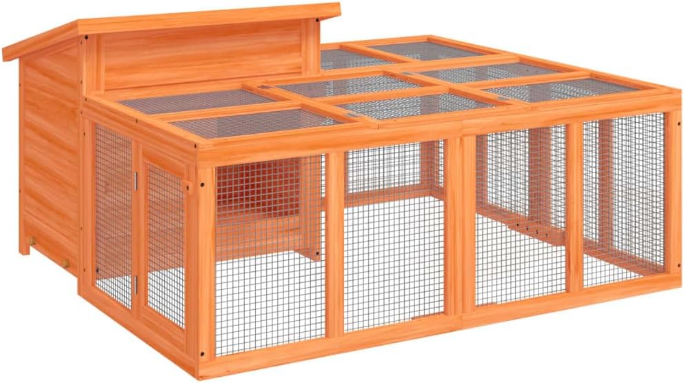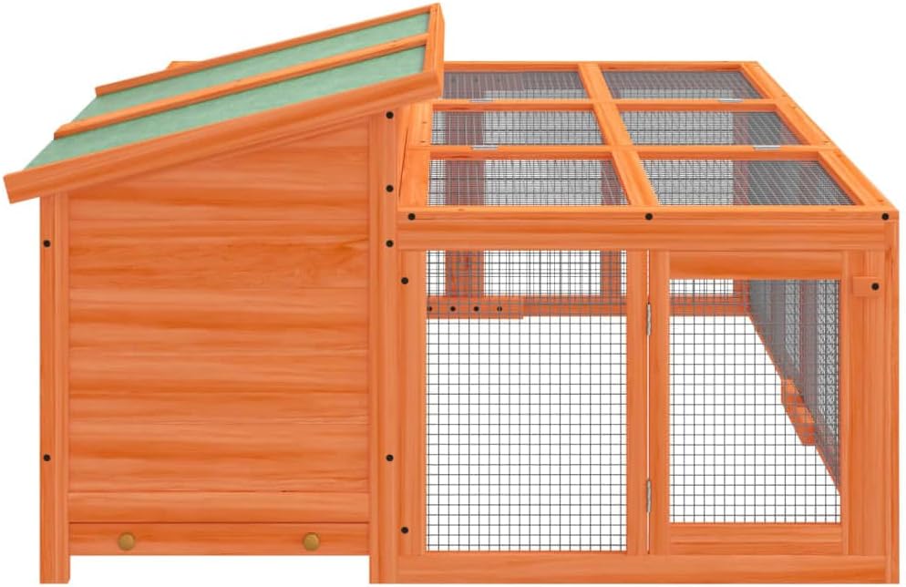 Kaninchenstall mit Außengehege: Dieser Kaninchenstall verfügt über ein geräumiges Außengehege und einen Schlafbereich und bietet Ihren pelzigen Freunden wie Kaninchen, Meerschweinchen, kleinen Enten und anderen Kleintieren eine sichere und gemütliche Umgebung zum Spielen und Ausruhen.