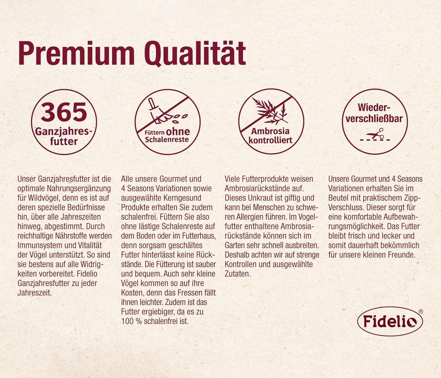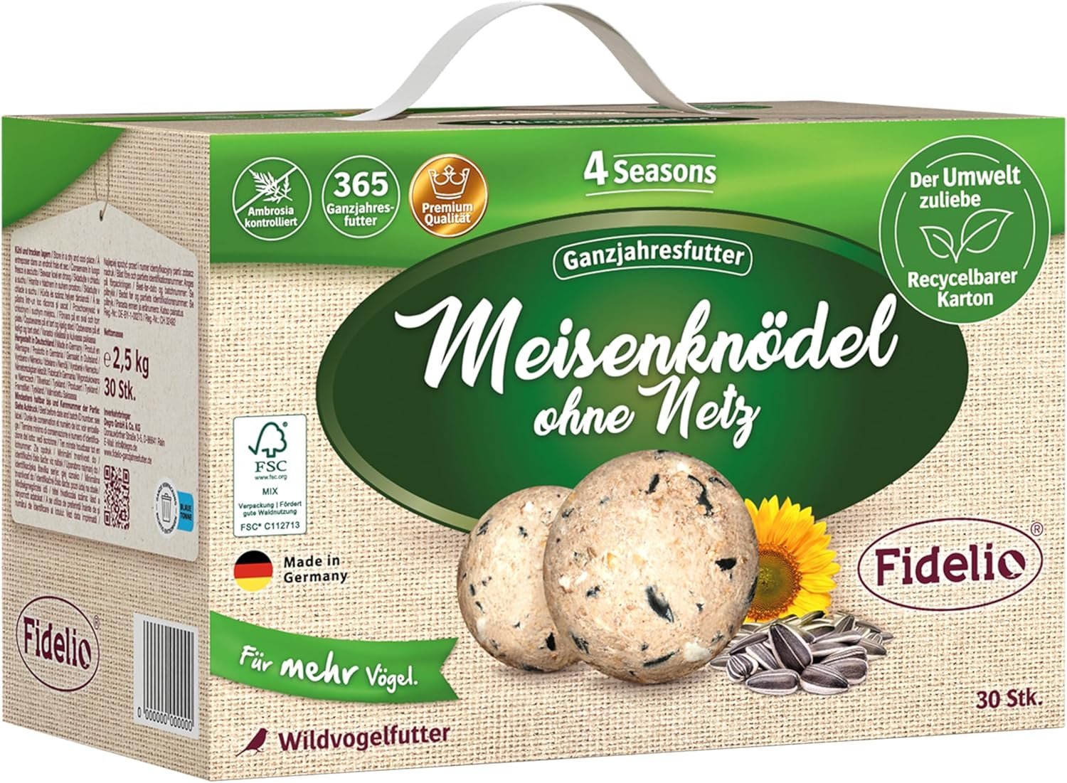Unsere Fidelio-Meisenknödel werden aus hochwertigen Zutaten hergestellt und bieten Wildvögeln zu jeder Jahreszeit wertvolle Unterstützung. Sie enthalten ätherische Fette und Öle, die sowohl im Winter als auch im Sommer eine unverzichtbare Energiequelle sind und die Vögel optimal versorgen.
