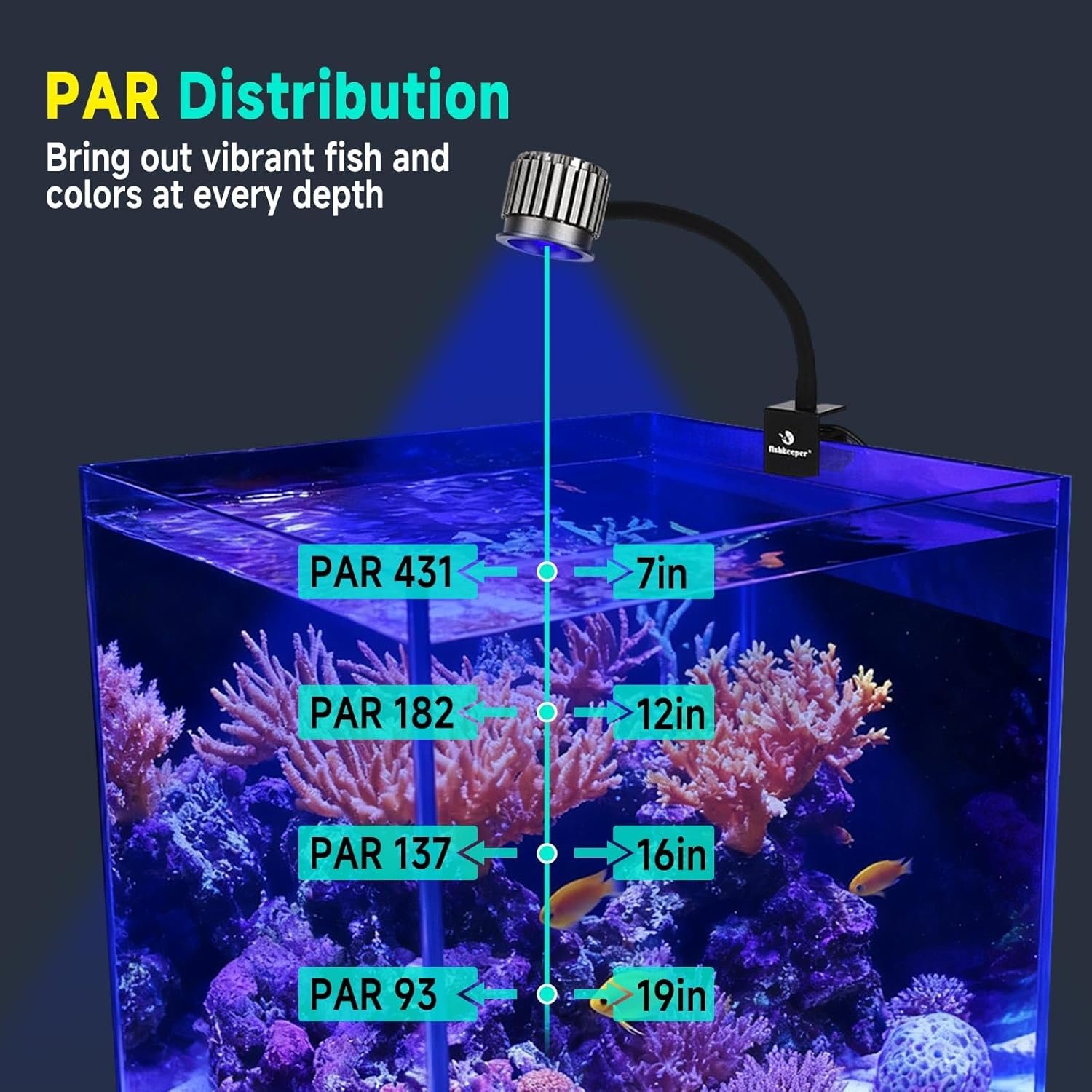 Hohe Leistung und gute Wärmeableitung: Hochwertige Aquarienlampen-LEDs mit gleichmäßiger, augenschonender Beleuchtung, kombiniert mit einem verbesserten optischen Linsensystem für ein besseres Seherlebnis. Das Aluminiumgehäuse sorgt für eine hervorragende Wärmeableitung für eine langanhaltende Leistung im Meerwasseraquarium.