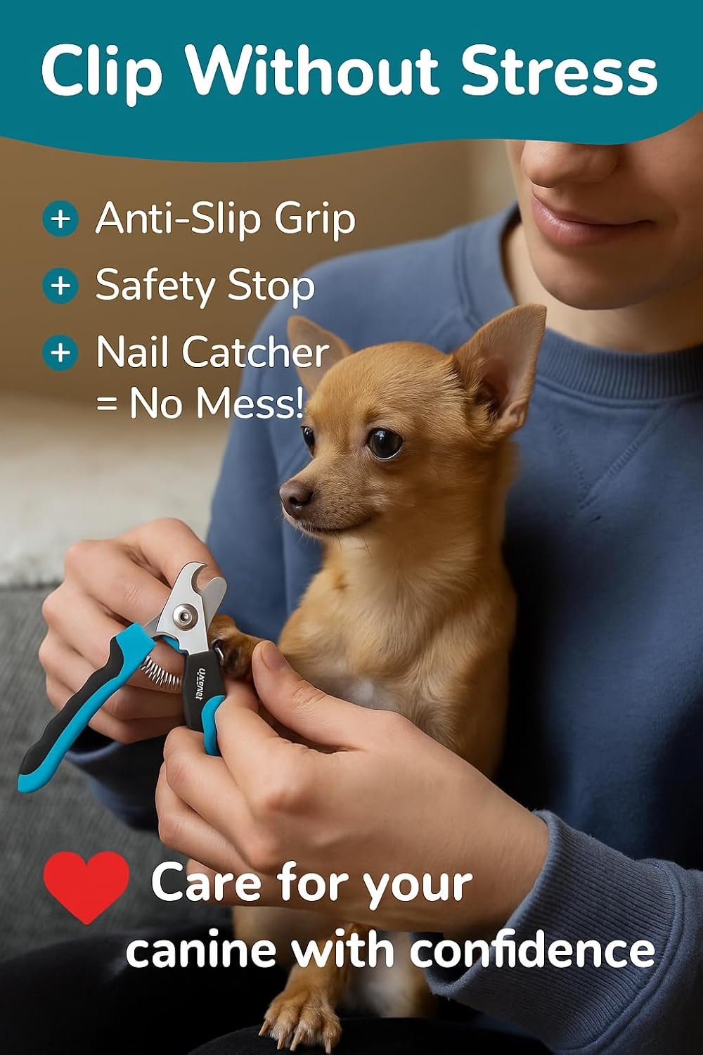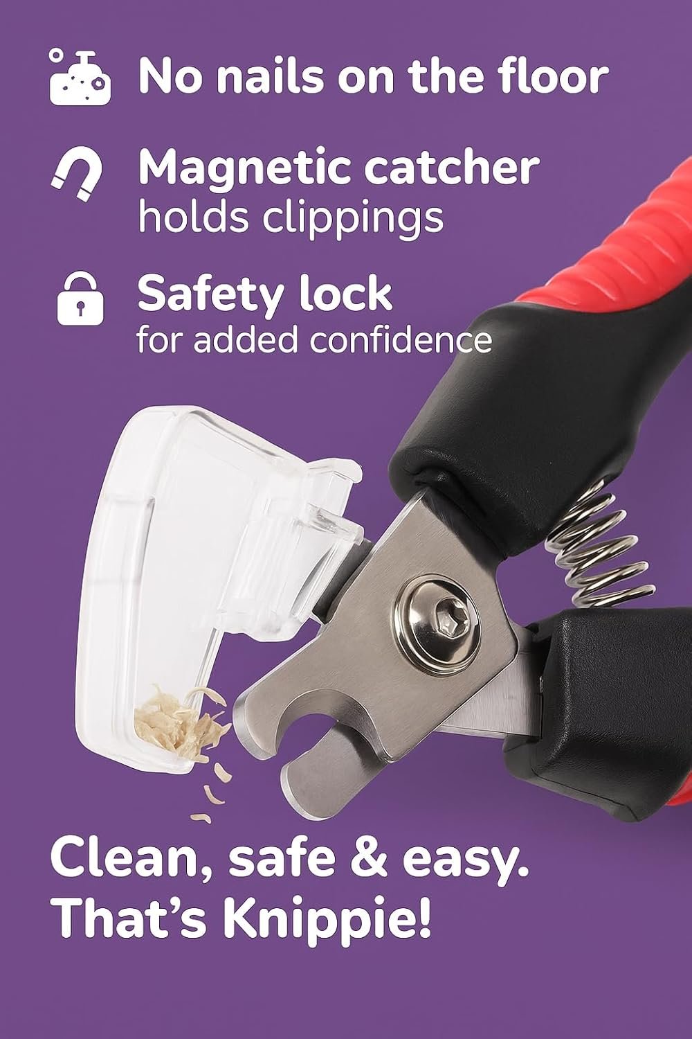 Maximale Sicherheit – Ausgestattet mit einer integrierten Sicherheitsbegrenzung verhindert der Krallenschneider ein zu kurzes Schneiden der Krallen und minimiert so das Verletzungsrisiko. Ergonomisches und rutschfestes Design: Die komfortablen, rutschfesten Griffe sorgen für optimale Kontrolle, auch bei der Pflege großer und kräftiger Hunde.