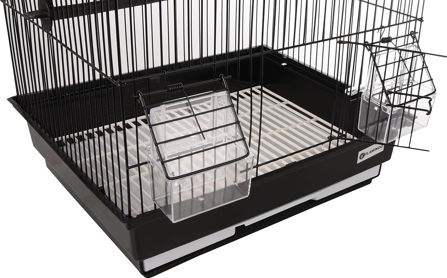 Der schwarze Vogelkäfig Alor 2 ist praktisch und kompakt und eignet sich perfekt für den Transport. Das robuste Material garantiert Sicherheit. Die Schublade macht die Reinigung mühelos.