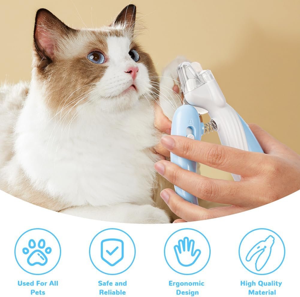 LED-Licht Die Krallenschere für Haustiere verfügt über ein integriertes, sehr helles LED-Licht. Es beleuchtet den Blutkanal der Krallen und ermöglicht so ein präzises Schneiden an der richtigen Stelle. Dadurch wird die Gefahr von Überlappungen deutlich reduziert und Nagelbluten sowie bakterielle Infektionen verhindert.