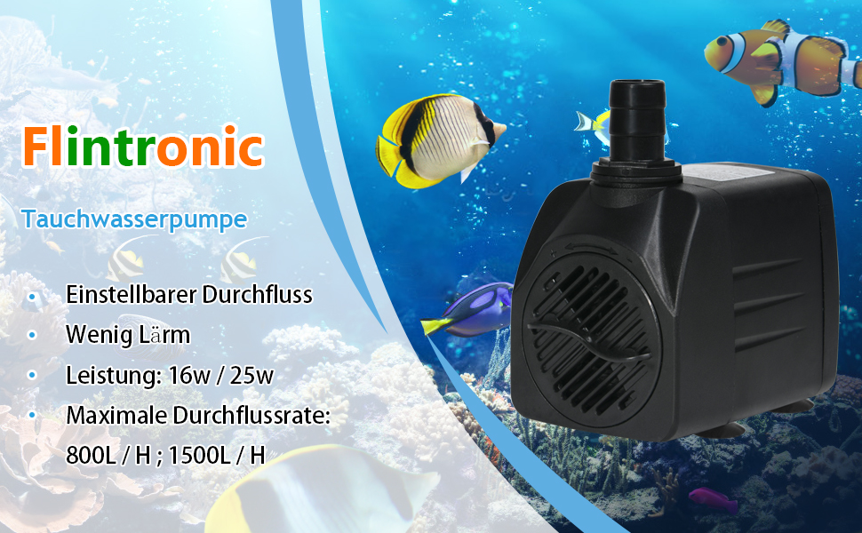 Breite Anwendung: Die Springbrunnenpumpe kann Ihren Wassertank umwälzen und eine natürliche Umgebung für Ihren Sprühnebel schaffen. Das Flintronic Fountain Aquarium ist ideal für kleine bis mittelgroße Aquarien, Haustierbrunnen, Springbrunnen, Düsen, Wassergärten, Hydrokultursysteme, Süßwasser-Wassertiere und mehr.